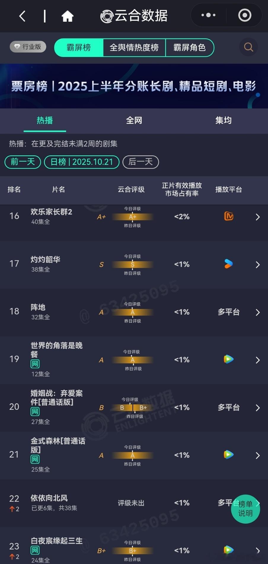 许我耀眼依然在榜首,在播剧任重道远啊。