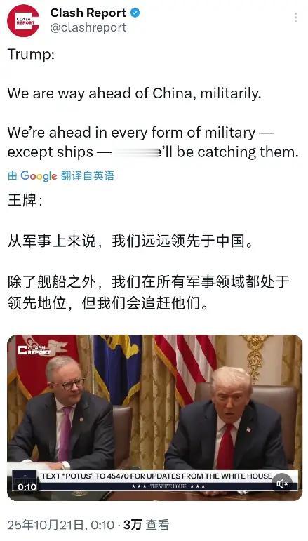 来看看最典型的税宗语言方式。他说美国除舰船外在军事上全面领先中国,但是美国会努力追赶中国。[我想静静] 这就美洲特色的魔幻现实主义。一半魔幻一半现实。说美国全面领先,就是还生活在魔幻世界。说要努力追赶,就生活在现实世界。 中国有句老话——理想很丰满,现实很骨感。 中国六代机都飞两款了,美国还只有PPT,而且还连夜画的。 F22F35在解放军面前就是裸奔。 无人机,未来战争最重要的武器,中国是霸主。 陆军美国从来就是短板。 导弹美国一直都是落后的一方。 海军航母电磁弹射美国但现在都没有完全搞定。没有与055匹敌的大驱。造船能力是中国的十分之一。 对了除了航母数量、核潜艇以及美军海外基地数量美国领先外,美国那叫全面落后,不叫全面领先。 如果要追赶中国,也就是要把自己的航母数量追赶到3?别说真有可能,那些老掉牙的早已不堪一击,当废钢来卖都没人要。核动力的拆除费用太高。 税宗给自己壮胆,但是发现不能细看,看就壮不起来了。[我想静静] 点右上角关注我,我们一起去看这个魔幻的世界