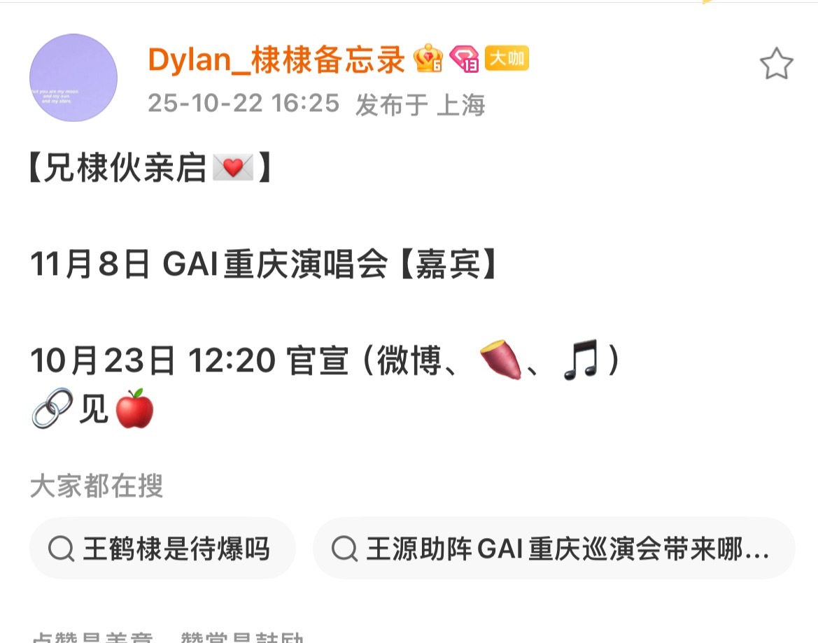 王鹤棣要去GAI演唱会做嘉宾,会有表演吧[期待]