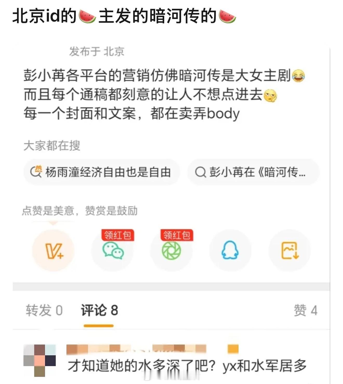 确实在不同平台都刷到了不少彭小苒火辣的身材和唐怜月的角色cp,营销挺猛的。
