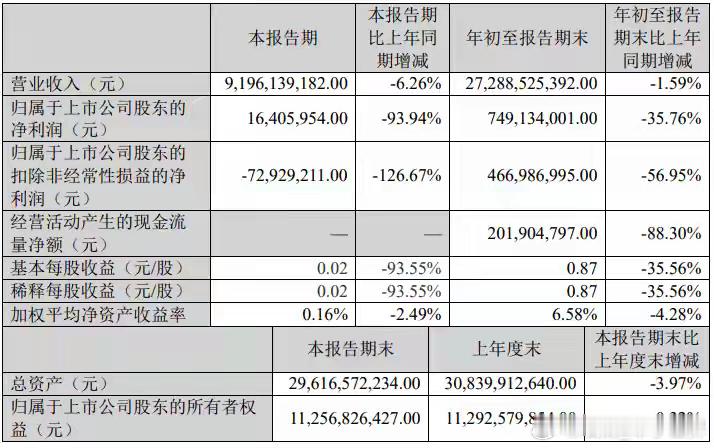 【江铃汽车三季度营收和净利润双双降低】江铃汽车2025年三季报交出一份承压成绩单:单季度营收91.96亿元同比降6.26%,净利润1640.6万元同比暴跌93.94%,前三季度营收与净利润亦分别下滑1.59%、35.76%,盈利压力凸显。