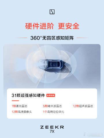极氪7X的出色表现,源于其搭载的顶级智能硬件与安全架构。车辆全系标配Thor-U芯片,最高算力可达700TOPS,为复杂场景的实时运算提供强大支撑;同时配备激光雷达在内的31颗超强感知硬件,构建起360度无死角的感知网络,可实现对行人、车辆等障碍物的毫秒级识别与响应。安全防护层面,整车采用83.3%高强度钢材,配合“穹甲车身”结构,其中包含10处2000MPa核潜艇级热成型钢,形成坚固的被动安全防线,与主动辅助驾驶系统形成互补,构建起“主动预警-智能规避-被动防护”的全方位安全体系。