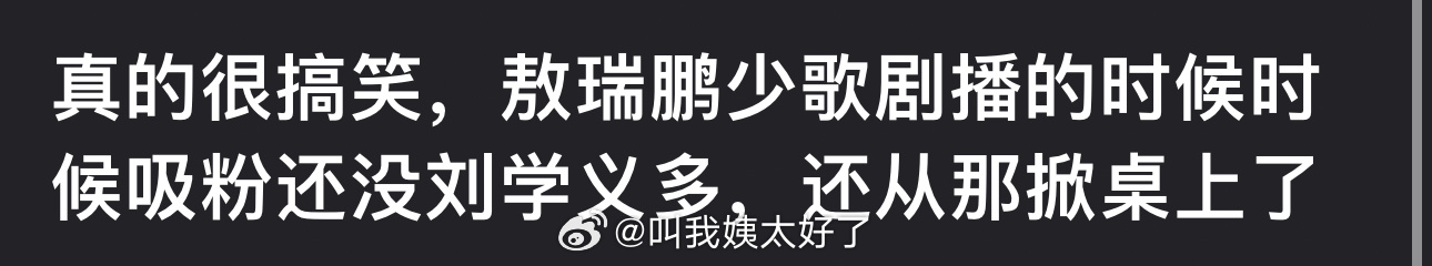 有网友说敖瑞鹏在少歌剧播时吸粉还没刘学义多,大家感觉当时谁吸粉更多?