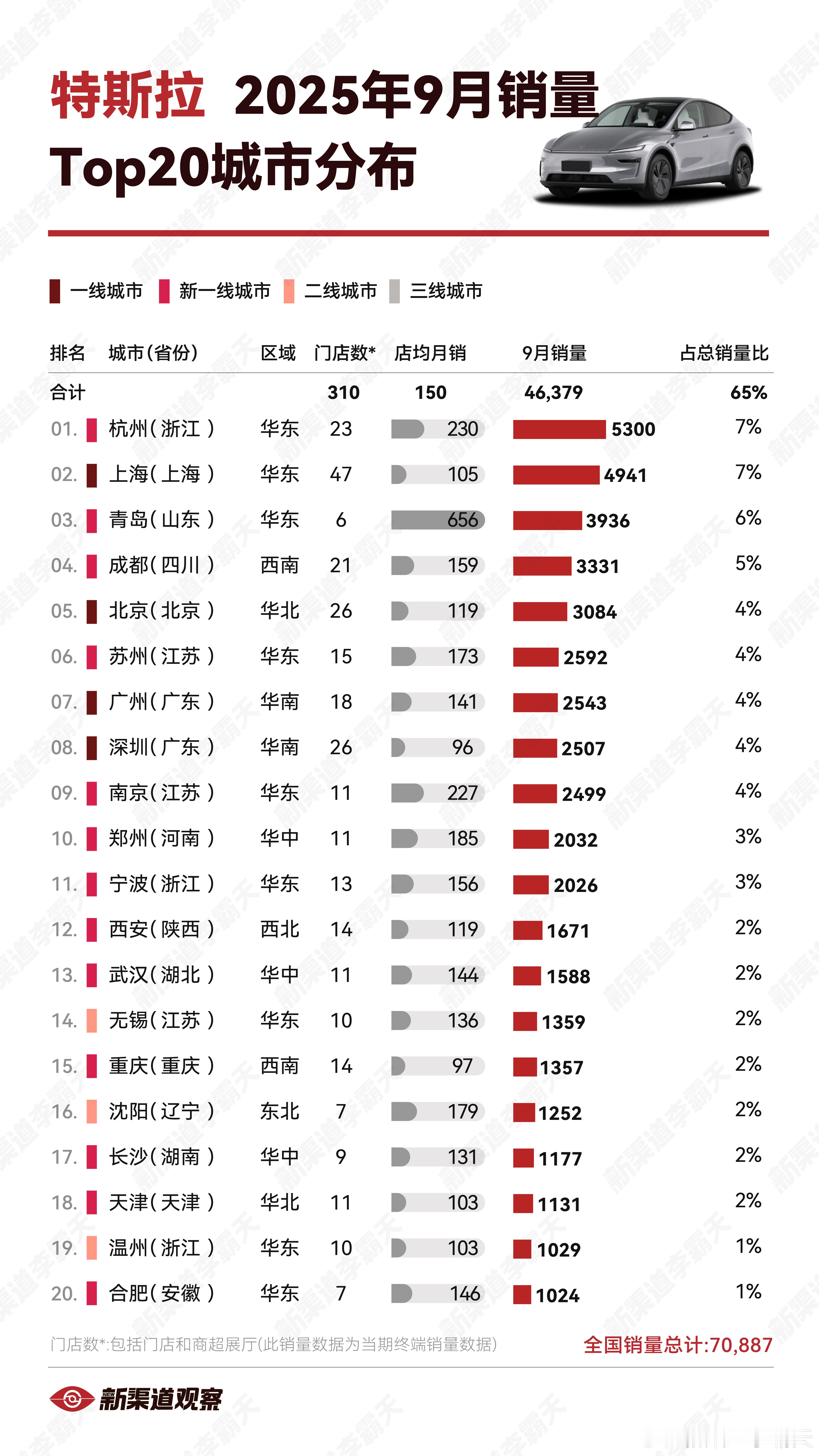 紧随其后的青岛接近4,000,店均销量600+,表现相当突出