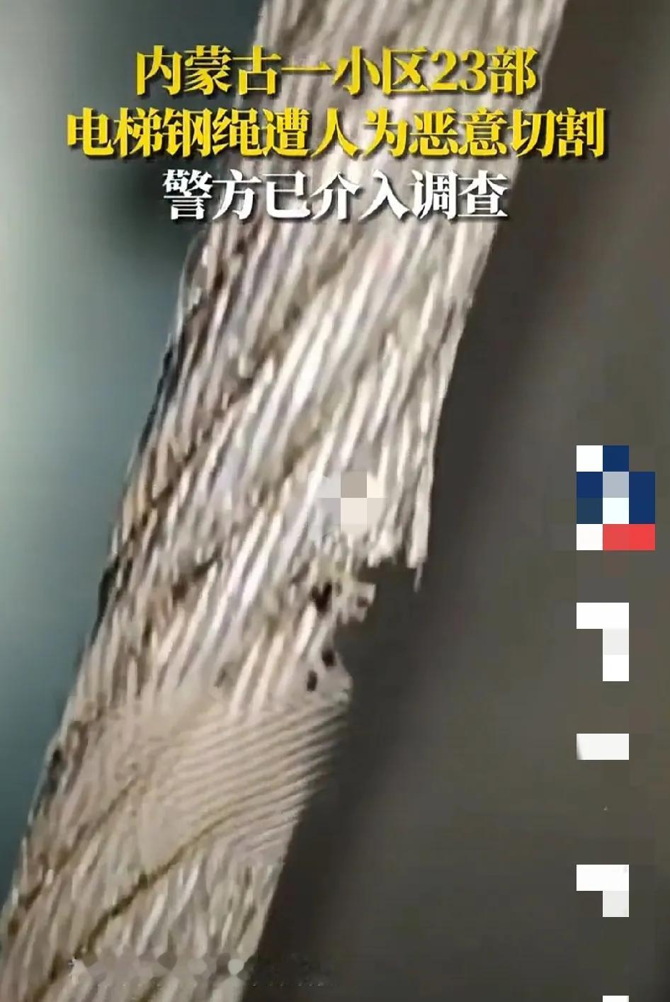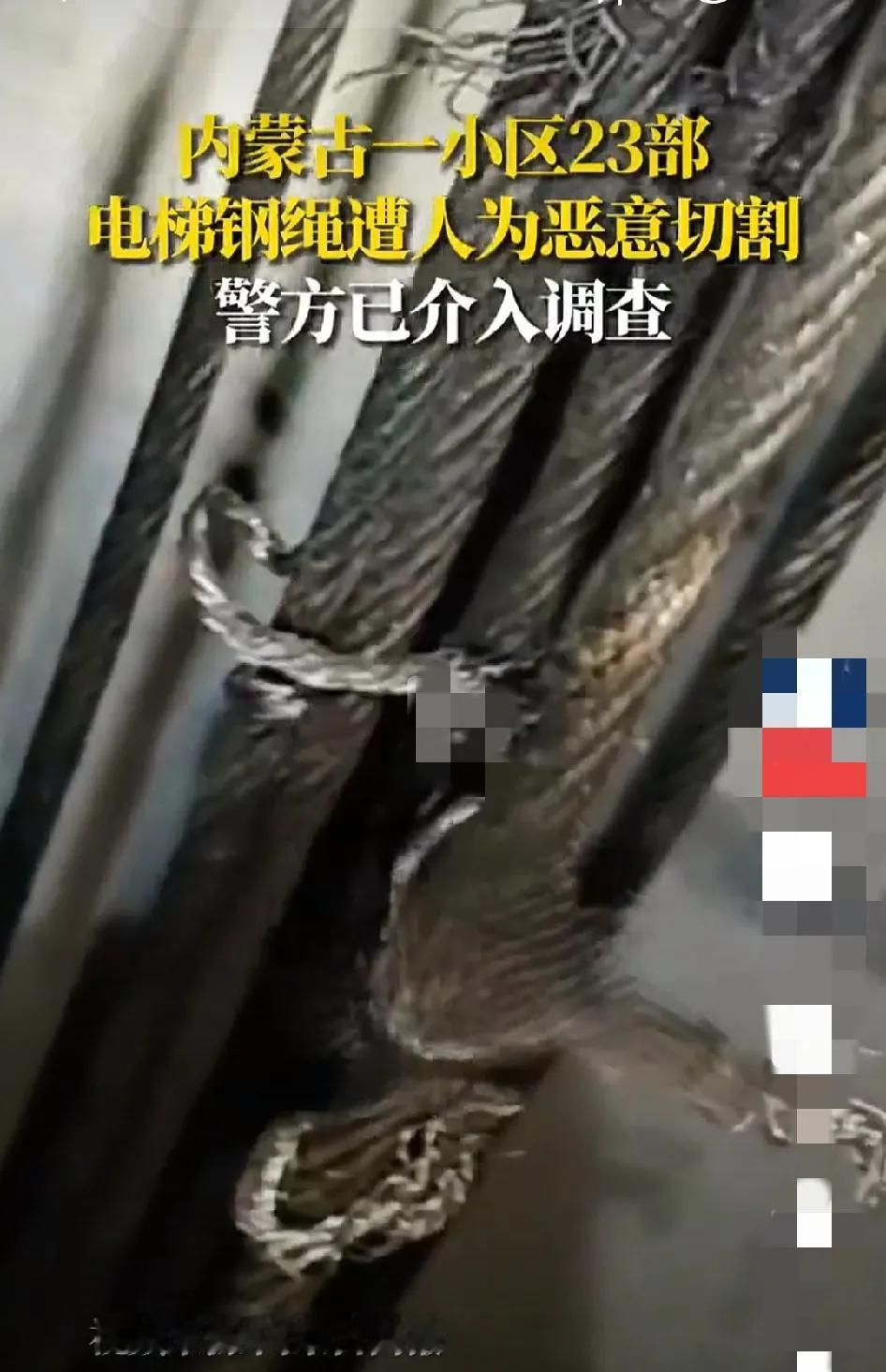 割电梯钢绳?太恐怖了!太危险了!这是谋杀呀!这是严重破坏公共安全呀!这要是不被发现,要出惊天动地的大案呐!做这事的心肠歹毒之极,缺德之极,会有报应的!一定要严查到底,让警察叔叔教育他们怎么好好做人!但愿小区内的人们一切平安!