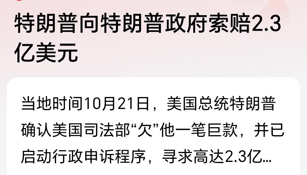 税宗安排美国内务府向刑部要钱,说欠他2.3亿美元。国家的是国家的,私人的就是私人的,税宗还是公私分明的。 先不管这钱是怎么欠上的。 只说这个时间点很有意思。 美国刑部刚没收了柬埔寨太子集团12.7万枚比特币。 顺便说一句,据说税宗小皇子巴伦特朗普就是虚拟币大玩家。 是不是很有意思? 点右上角关注我,我们一起去看这个魔幻的世界