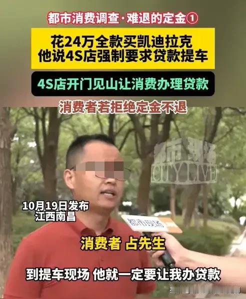 江西南昌,男子在4s店交了10000元定金,明确告诉销售人员全款提车。谁知到了提