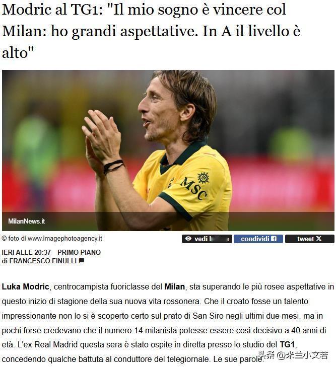 莫德里奇!我的梦想就是与米兰一起赢得冠军!莫德里奇接受采访表示我加盟米兰只有一个梦想就是随米兰赢得冠军。 莫德里奇真的是一位十分难得的球员,之前接受采访说的是我没有梦想,因为加盟米兰一直就是我的梦想,现在梦想成真了。这次又说梦想是夺冠,赛季末续约时候可能会变为夺得欧冠,估计莫德里奇加盟米兰的时候也不清楚自己是否能适应联赛节奏,包括米兰这样大幅度调整阵容会是什么表现,所以他开始接受采访说的比较谦虚,其实谦虚啥,直接说我来米兰就是拿意甲冠军的,西甲冠军拿的有点腻了所以来意甲拿个冠军,虽然欧冠也拿了不少,但这个不介意在米兰再拿喜一次。 莫德里奇加盟米兰不仅仅是莫德里奇自己担忧适应问题,球迷也存在同样的担忧,但球迷对莫德里奇加盟意见是一致的,毕竟米兰球迷还是懂球的,大家都清楚哪怕莫德里奇不能适应意甲联赛,他在场下对米兰的作用也是不可估量的。