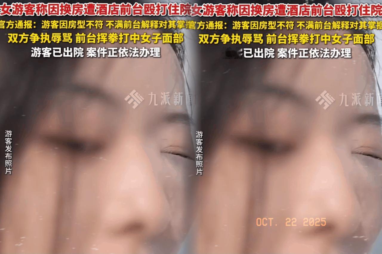 又一位被社会毒打的女人,除了家人惯着你,社会人谁会惯着你? 出去旅游本是寻开心,可有人偏要把旅途变成“比武场”!九寨沟某酒店里,一位女游客因房型不符和前台起争执,上来就推倒两台电脑,还当着众人面甩了男服务员一个大嘴巴——先不说对错,敢对异性动手打脸,这脾气是在家被惯得没边了吧? 结果没等她得意,服务员一拳回怼在她脸上,当场把人打得鼻青脸肿。有人说服务员不该还手,可换谁平白挨一巴掌能忍?这事最讽刺的是,女游客明明是来享受服务的,却把自己活成了“麻烦制造者”,最后既没换到房,还落得一身伤,连旅途好心情都赔了进去。 其实出门在外,遇事多沟通才是王道,别把家里的“公主脾气”带到社会上,没人会惯着你的坏毛病。你觉得遇到这种房型不符的情况,到底该怎么处理才既解气又不惹麻烦?