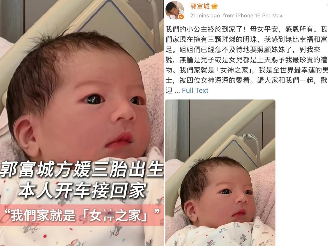 郭富城,开心发文。10月22日,郭富城在自己的社交平台上,开心发文,官宣三胎小