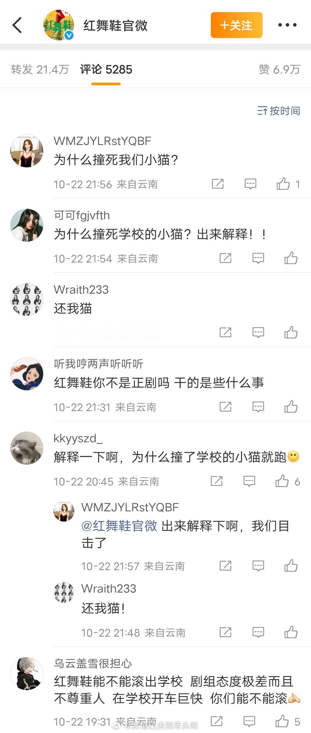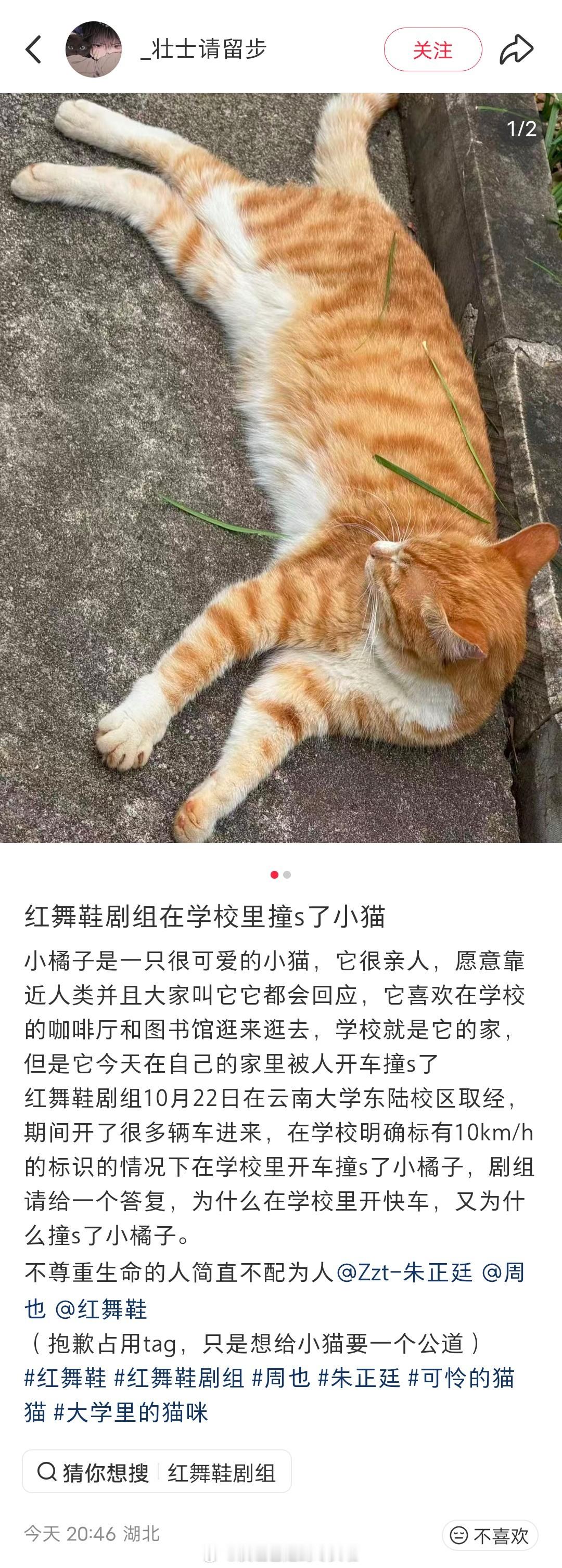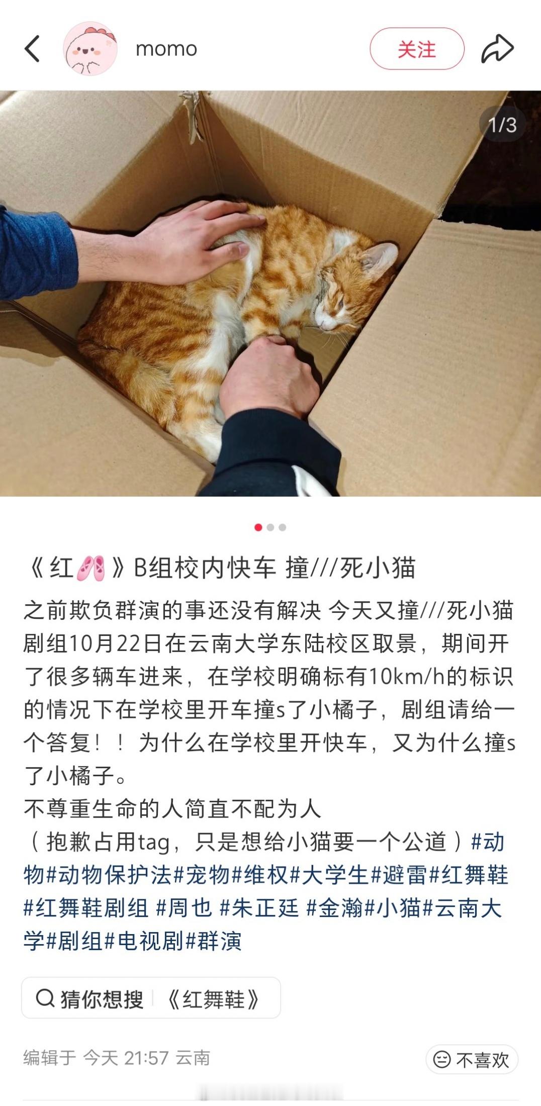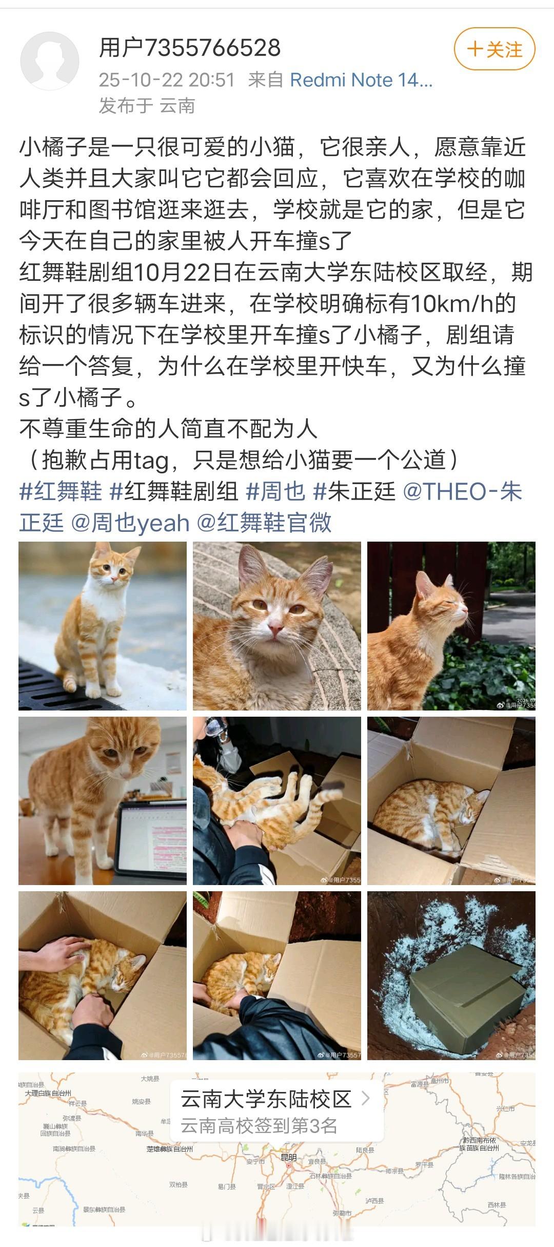 刷到红舞鞋和小猫的事情了,据说是剧组在云南大学校区取景时开快车。
