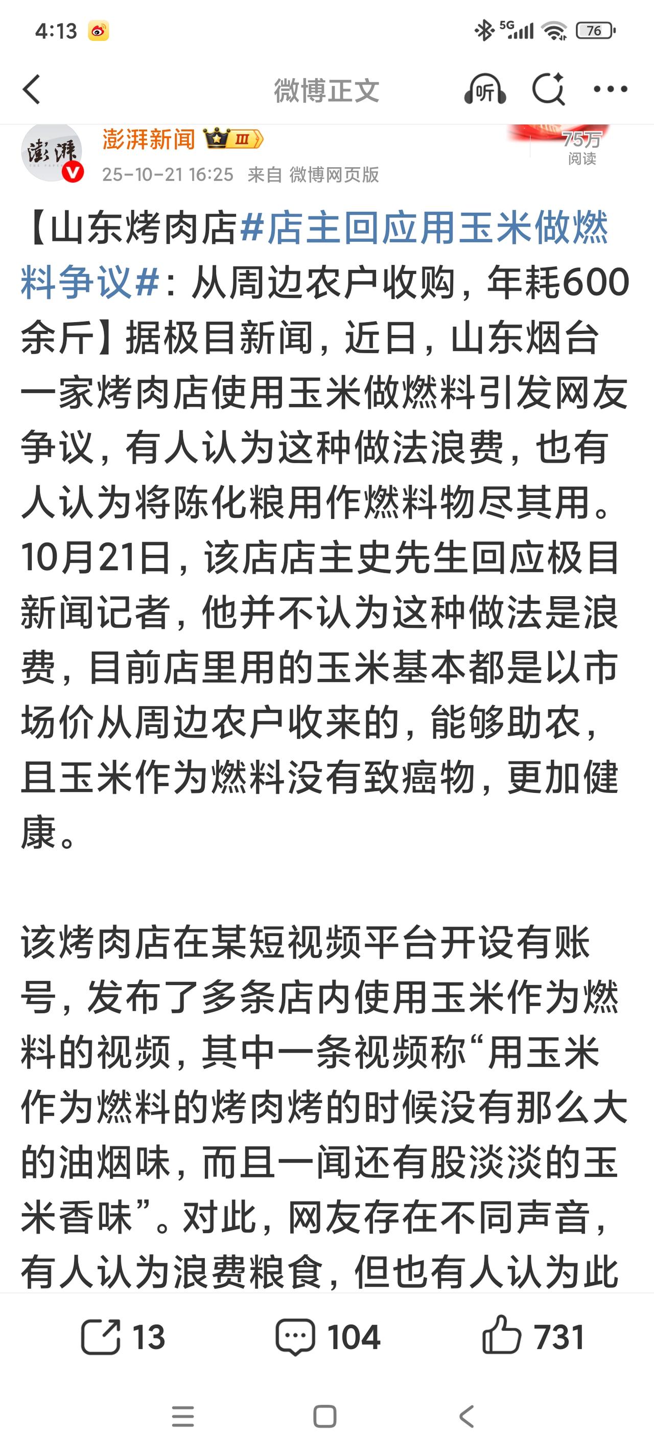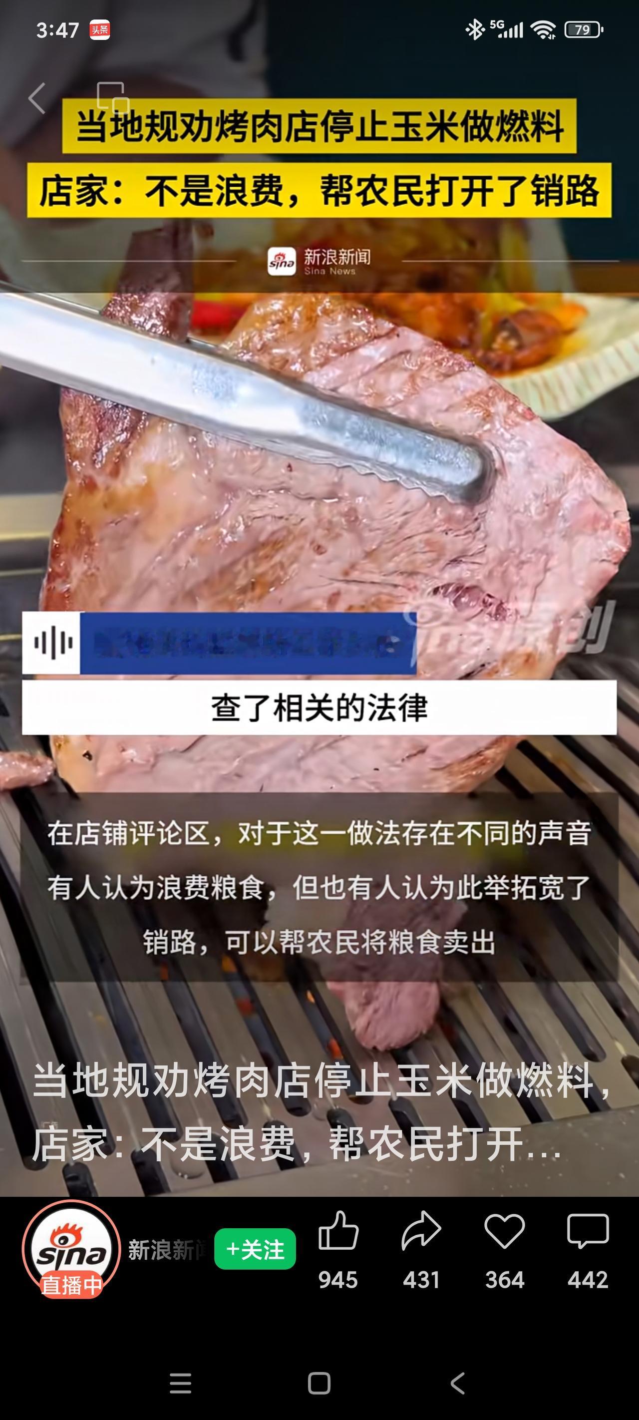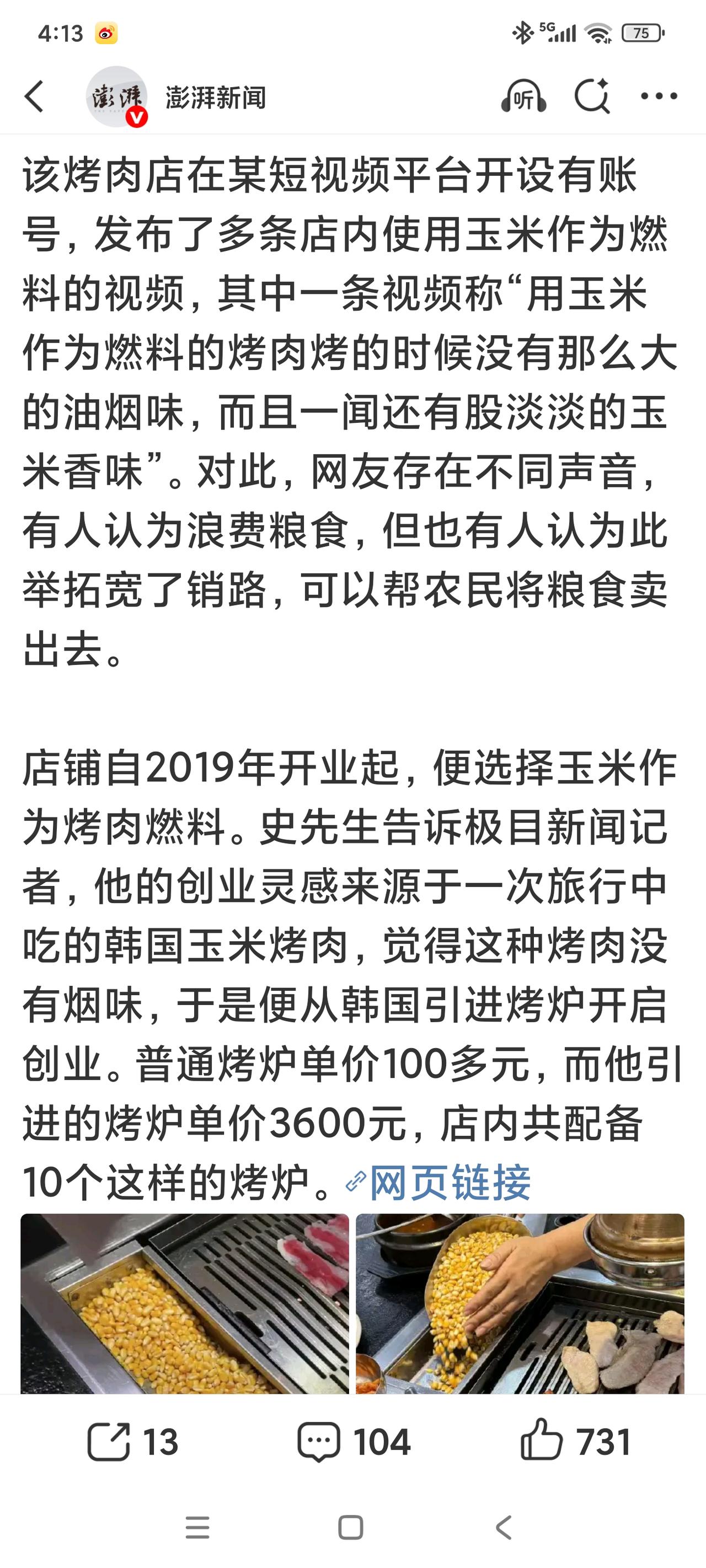 玉米烤肉,不是浪费 山东烟台一家烤肉店,使用玉米做燃料来烤肉,视频曝光后,引来