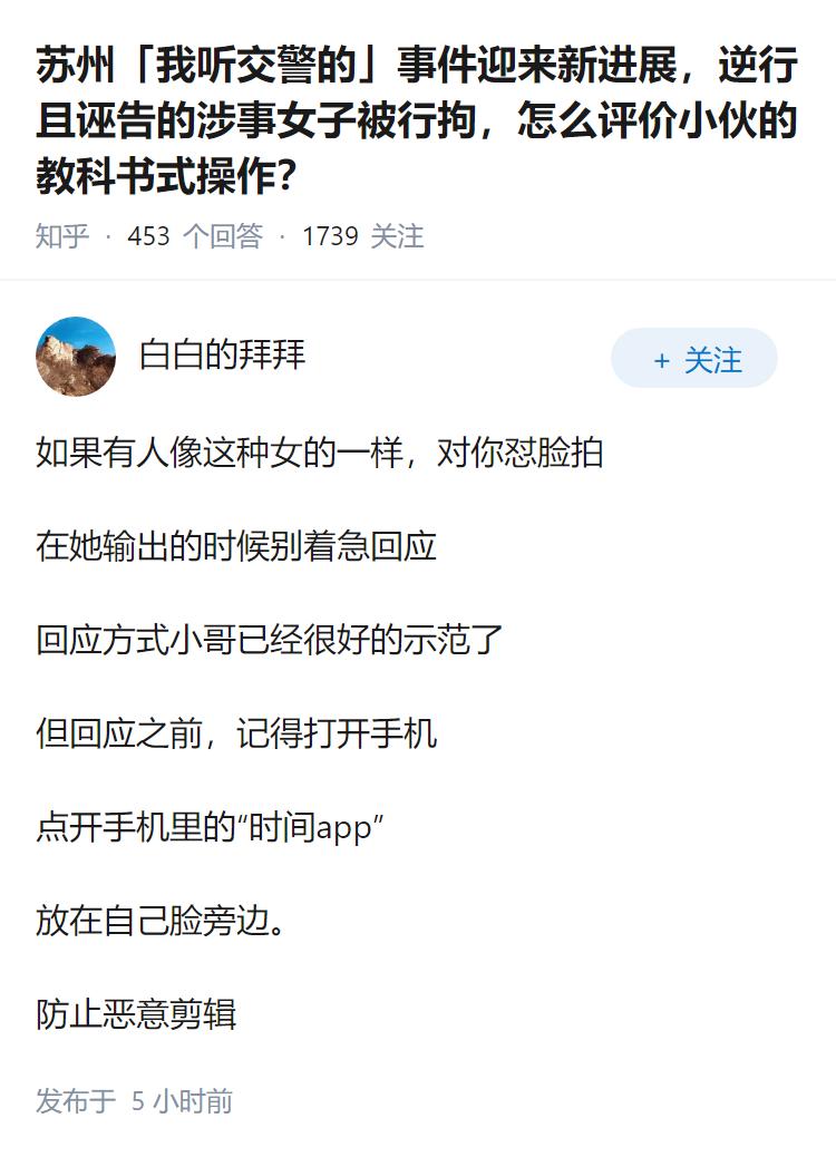 苏州「我听交警的」事件迎来新进展,逆行且诬告的涉事女子被行拘,怎么评价小伙的教科