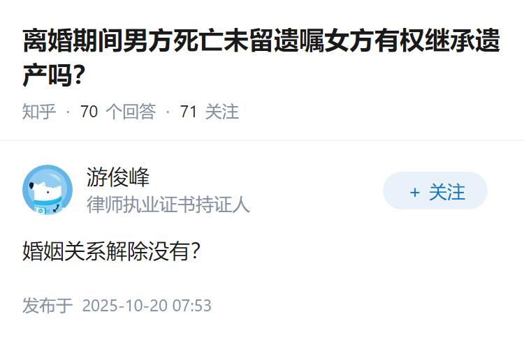 离婚期间男方死亡未留遗嘱女方有权继承遗产吗?