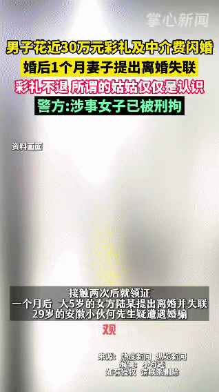 安徽小伙何先生通过婚介花近30万元彩礼及中介费闪婚,接触两次后领证,婚后仅1个月