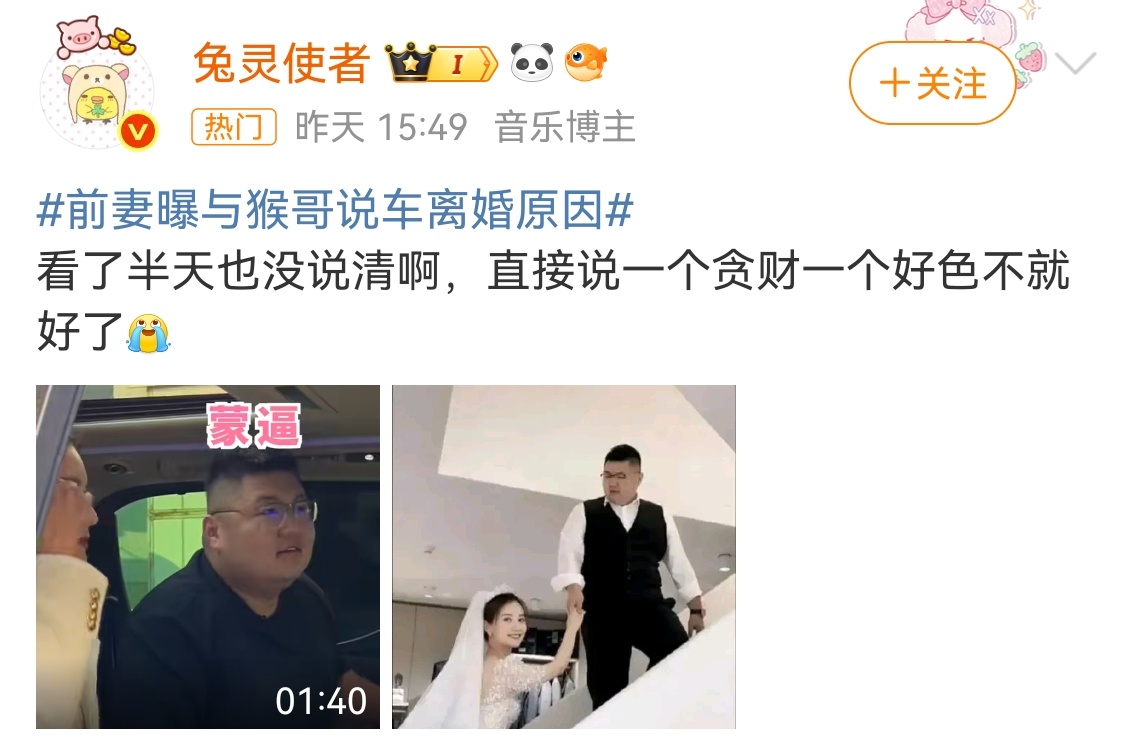 前妻曝与猴哥说车离婚原因这个总结怎么样?到位~