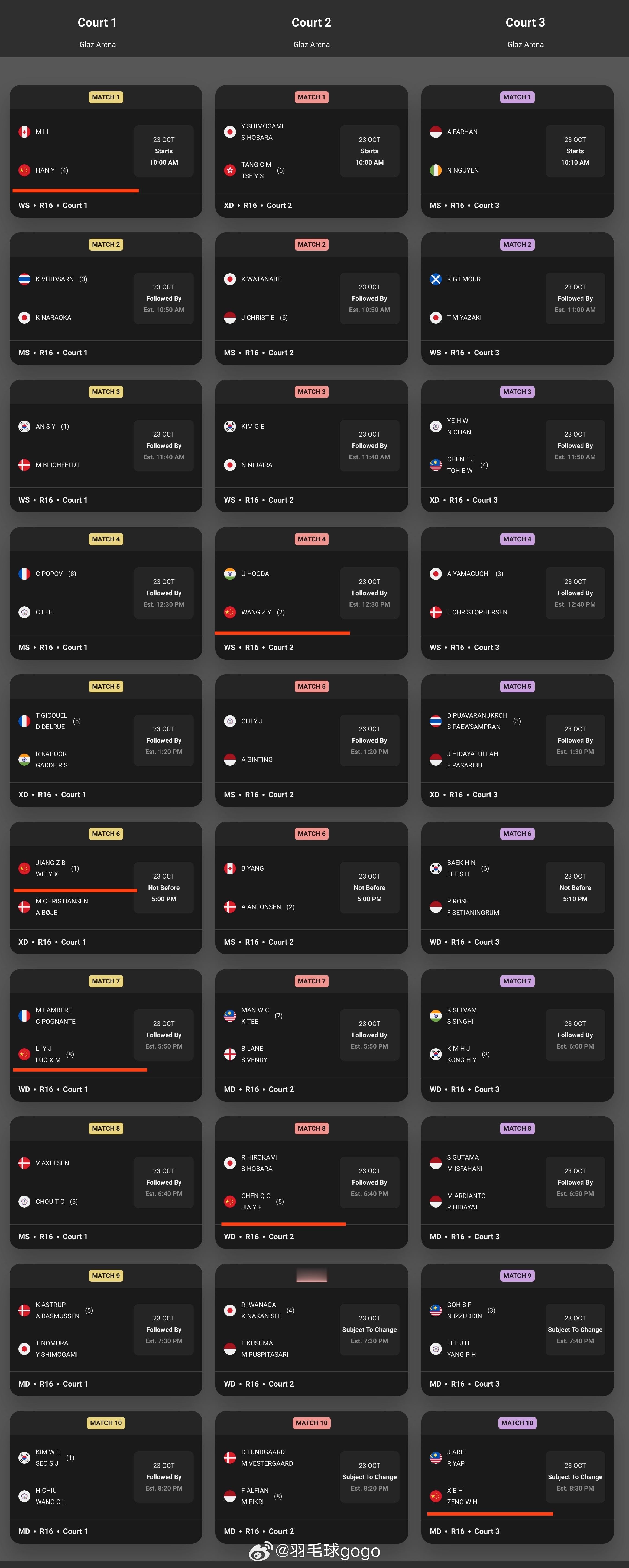 2025年法国羽毛球公开赛 10月23日国羽对阵