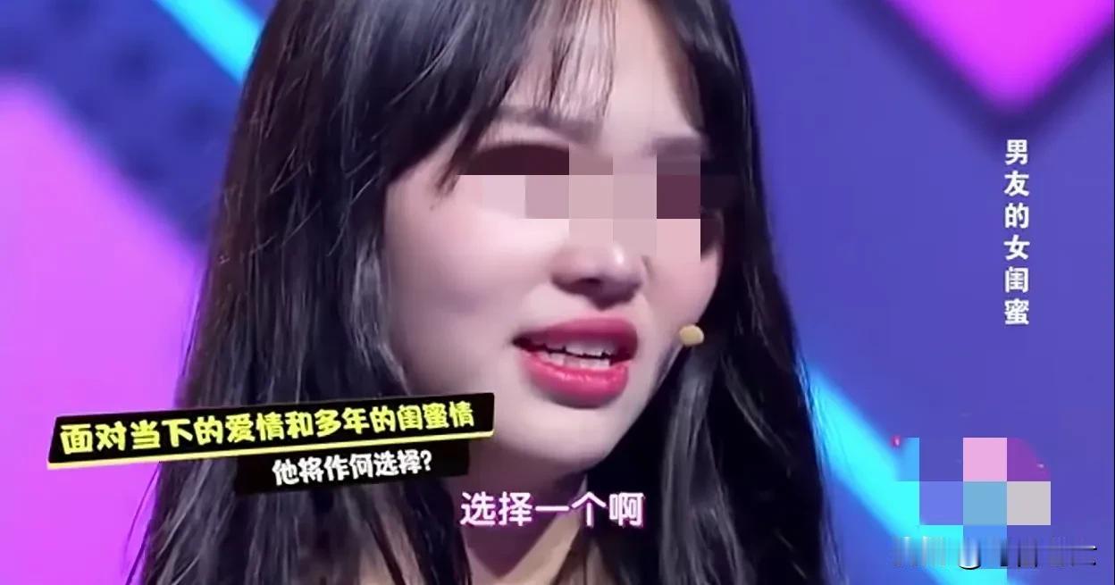 男生和女闺蜜暧昧不清,女友站在台上让他二选一,男生犹豫不决,女闺蜜说成全两人,自