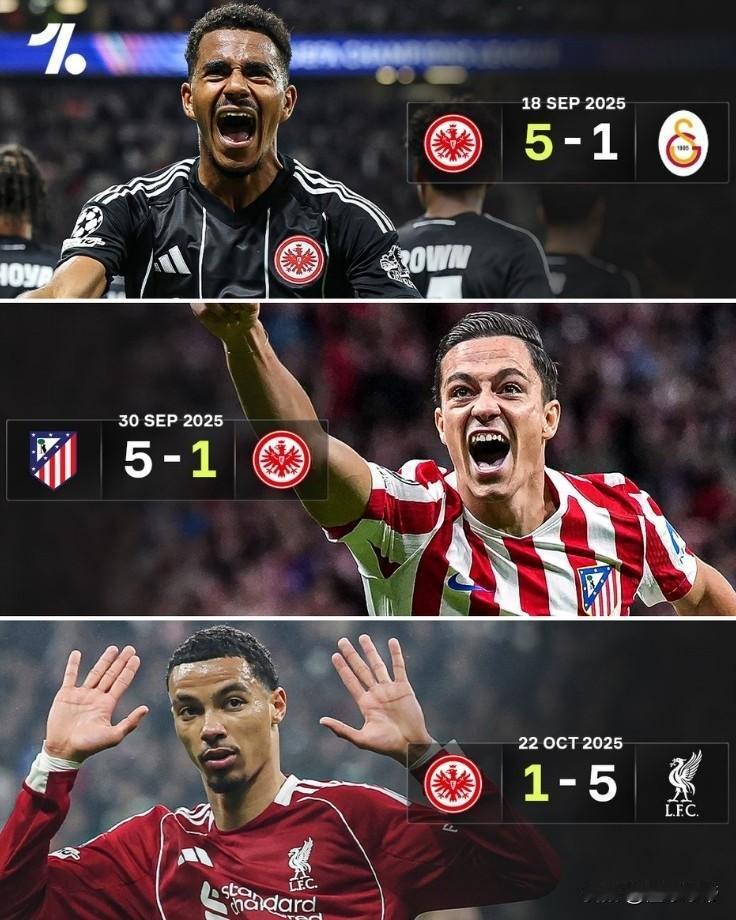 法兰克福:我只想打爆各位,或者被各位给打爆! 法兰克福真的是一支神奇的球队,在本赛季欧冠联赛的三场比赛中,法兰克福首轮5-1大胜加拉塔萨雷,次轮又1-5惨败马竞,第三轮又1-5成为了利物浦的出气筒,连续三场欧冠比赛都是5-1的比分。 法兰克福真的像火云邪神一样,要么打爆各位,要么被各位打爆,既分输赢,也决生死。 法兰克福本赛季在德甲同样如此,打进19球仅次于拜仁,但是丢了18球却是德甲最多,进攻虽然很强,但是真的一点都不防守呀。