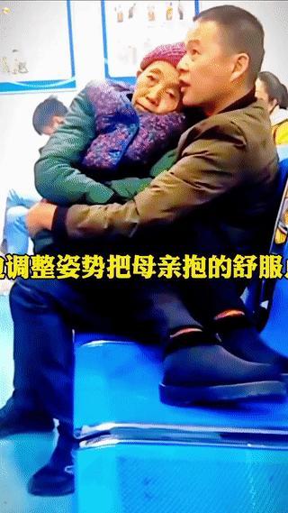 儿子抱着年迈的老母亲坐在在医院里候诊。 为了能让母亲舒服一些,他不断调整着姿势,让母亲好受一点。 这样孝顺的儿子真是太令人感动了!社会百态 传播正能量