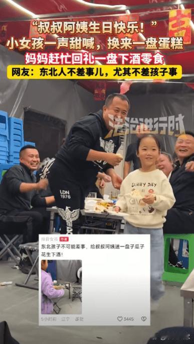 情绪价值瞬间拉满!辽宁,一小女孩在饭店吃饭时,正好遇到隔壁桌有人过生日,于是女孩在大人的鼓励下,上前甜甜地送上祝福道“叔叔阿姨生日快乐”,不料女孩的暖心祝福,瞬间让一桌子大老爷们沸腾了,有人哈哈大笑的赞扬女孩,也有人满心欢喜的赶紧给女孩递上蛋糕,一桌子的人更是一口一个宝贝地叫着女孩,最后女孩也是高兴的拿着蛋糕回到自己桌。 在一家特别吵的饭店里,到处都是碗筷碰着的声音和人们说话的声音,这时候,突然冒出一句奶声奶气的生日祝福,谁都没想到,就这么一句小孩说的话,居然让旁边两张挨得近的桌子,都变得特别开心。 原来邻桌的叔叔阿姨在过生日,还唱了生日歌,旁边桌的小女孩看到了之后就小声地与母亲说到,自己也想吃生日蛋糕,这时候母亲没有责怪孩子嘴馋。 而是教育孩子要是想吃生日蛋糕的话就要去给叔叔阿姨表示一下,于是孩子在一旁扭扭捏捏了很久之后,便主动走过去给他们送祝福。 这时候吵闹声声突然被孩子的一句生日快乐给打破刚开始的时候,后来等大家反应过来之后立马就给孩子切了一块蛋糕,最后她不光拿到了一块蛋糕,更重要的是,这事儿成了一次特别好的情绪交换。 更巧的是孩子的母亲正好买了瓜子和花生,于是就赶紧给邻桌倒了一盘子,表示一下感谢以及生日祝福。 东北人本来就热情又实在,不喜欢扭扭捏捏,就爱大家大大方方地打交道,这种氛围打底,两桌人隔着距离递善意,才没人觉得别扭,都愿意接着这份好。 就像网友说的,一句真心的祝福,比蛋糕吃着还甜,能甜到心坎儿里,这说明不管是谁,其实都特别想要这种没掺别的、纯粹的善意。 到最后,两边都得了好处,女孩凭着自己的勇气拿到了蛋糕,脸上全是自豪,大人们也收获了没想到的快乐,你对我好,我也对你好,成了互相温暖的事儿。 说到底那块蛋糕的甜味,不只是在嘴里,更重要的是它让我们清楚,人和人之间,最简单、最真心的善意,不用比成别的,它本身就能传下去,还能变得更有意义,最后让每个参与的人心里都填得满满的,特别满足。 对此,你还有什么看法呢? (信息来源 :法治进行时 )