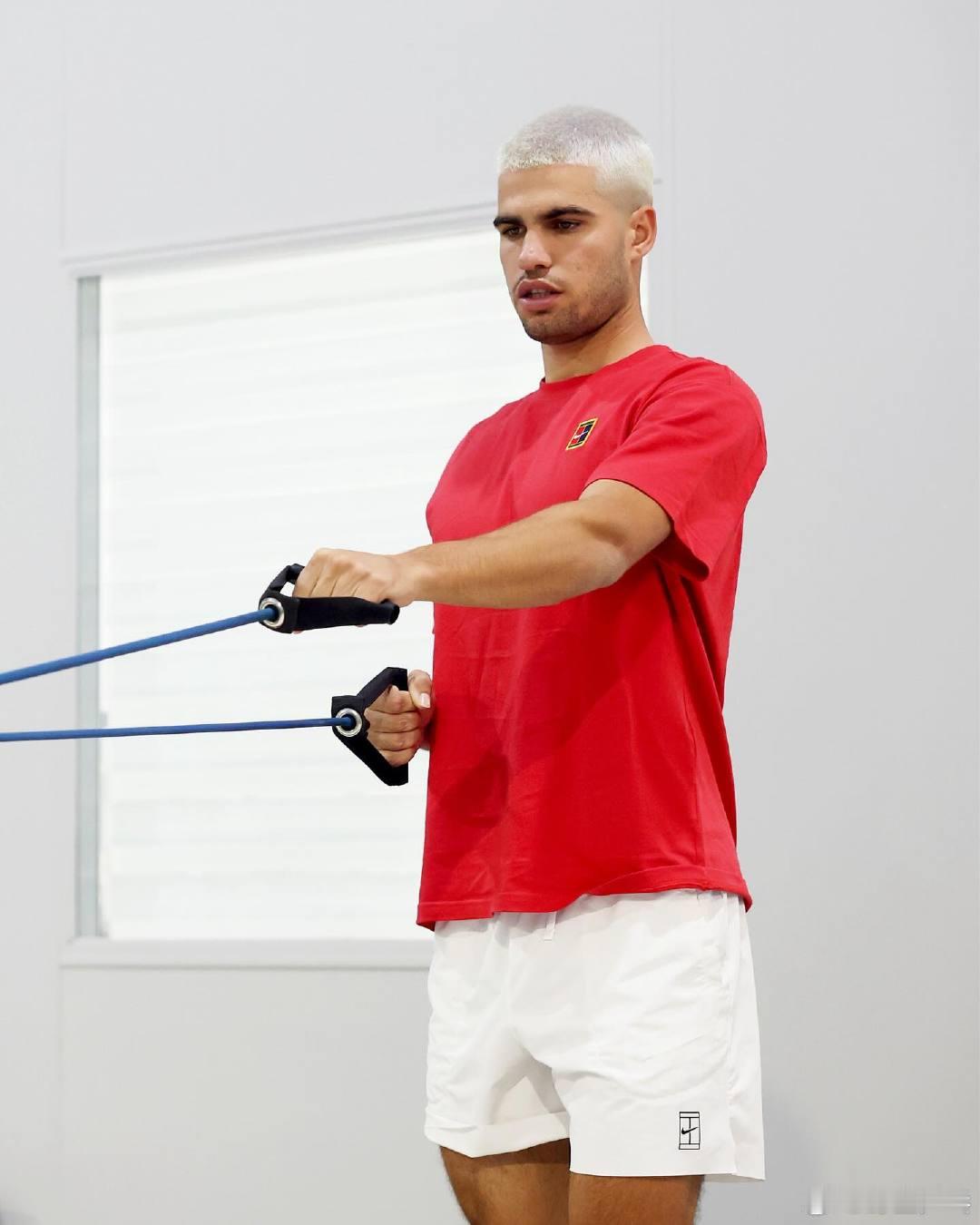 阿尔卡拉斯更新社媒晒出备赛照,“椰蓉糯米糍”发型太有喜感