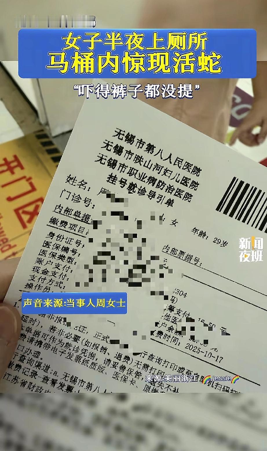 “深夜惊魂!”马桶里钻出不速之客,深夜江苏无锡的周女士起夜去厕所,结果被什么东西