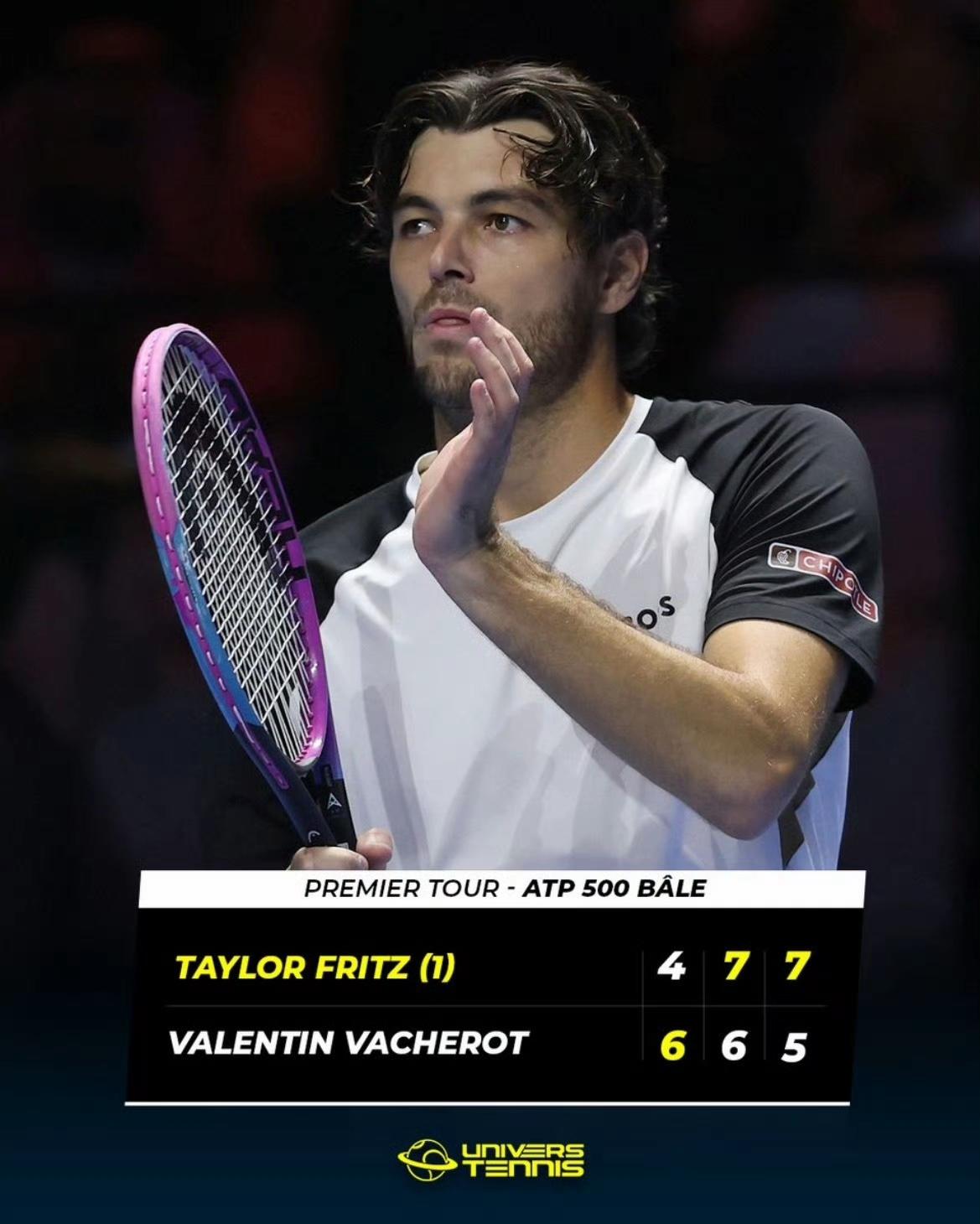 弗里茨在30天内击败了阿卡和德约,只获得0个积分。本周巴塞尔站,身为头号种子的他居然没轮空,直接对阵上海大师赛新科冠军瓦舍罗。 拉沃尔杯:2-0阿尔卡拉斯 六王大满贯:1-0德约(德约退赛) 巴塞尔:4-6/7-6/7-5逆转瓦舍罗 弗里茨一度出局只差两分,瓦舍罗夺冠后首秀还是可以的,第二盘抢七两分惜败,第三盘也很接近。