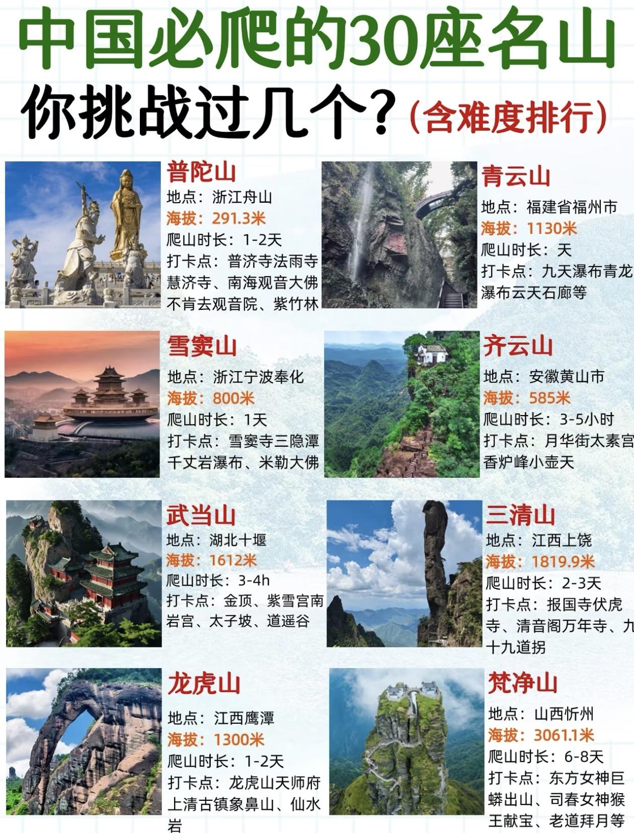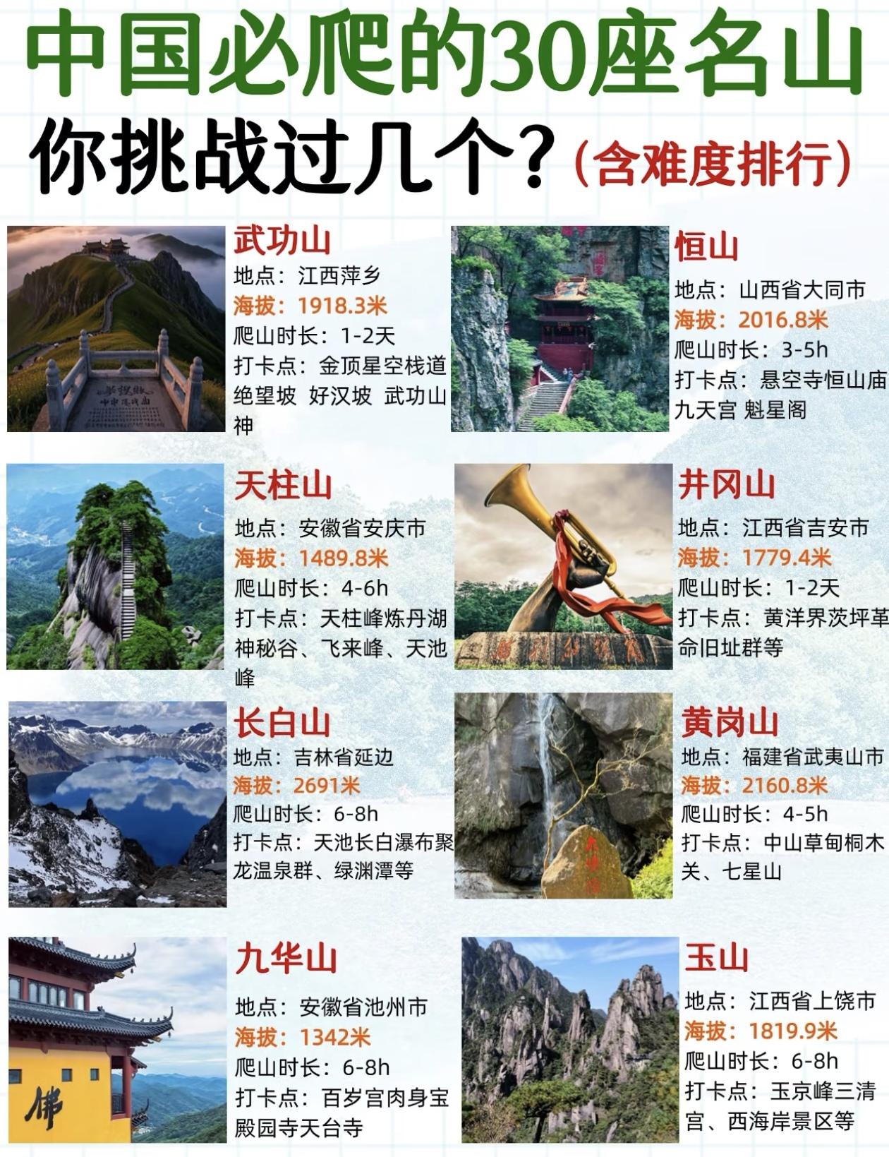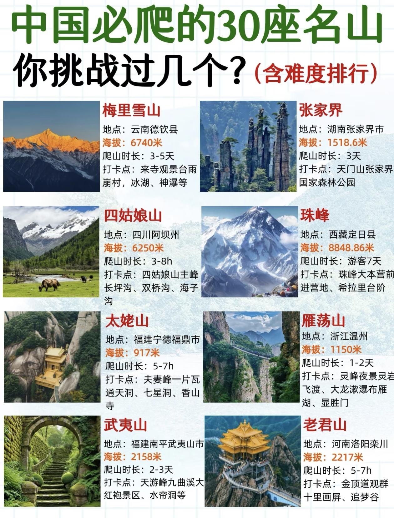 挑战中国必爬的30座名山,你征服了几座?🏔️💪