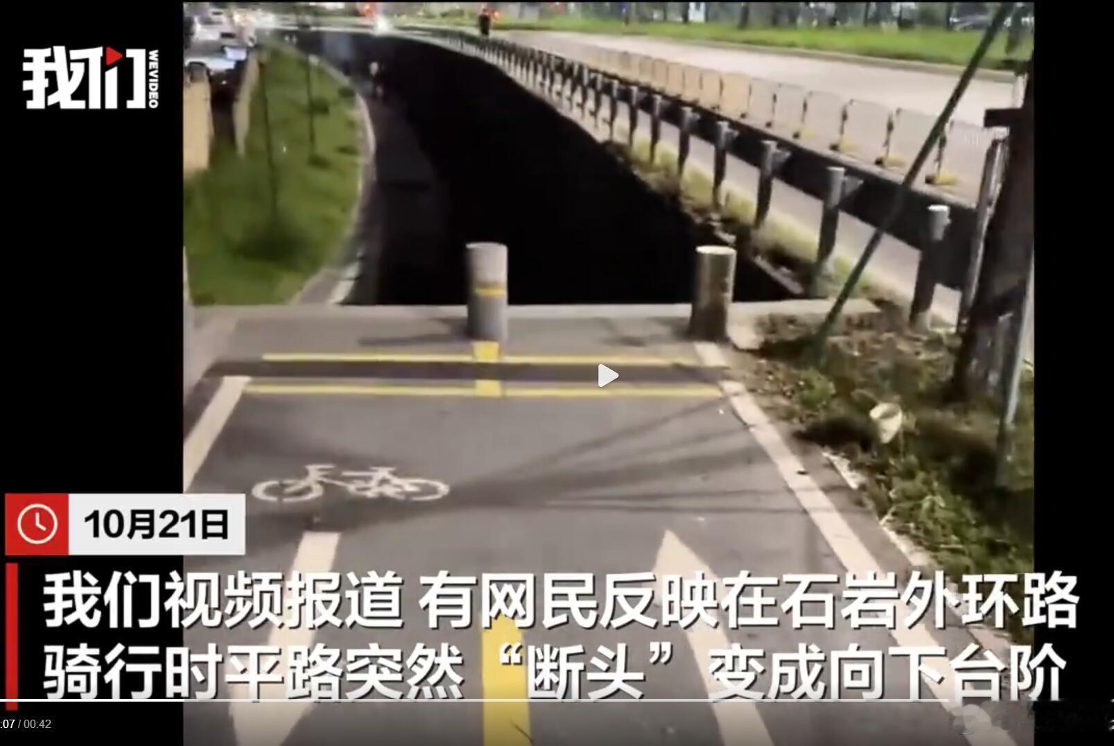 深圳交通部门回应一骑行道突然断头深圳一骑行平路突然断头变向下台阶