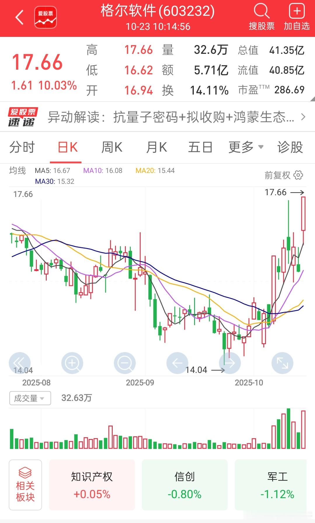 格尔软件也是牛的,今天大盘调整它直接反包涨停哦,应该也是消息面的影响开盘就强势拉