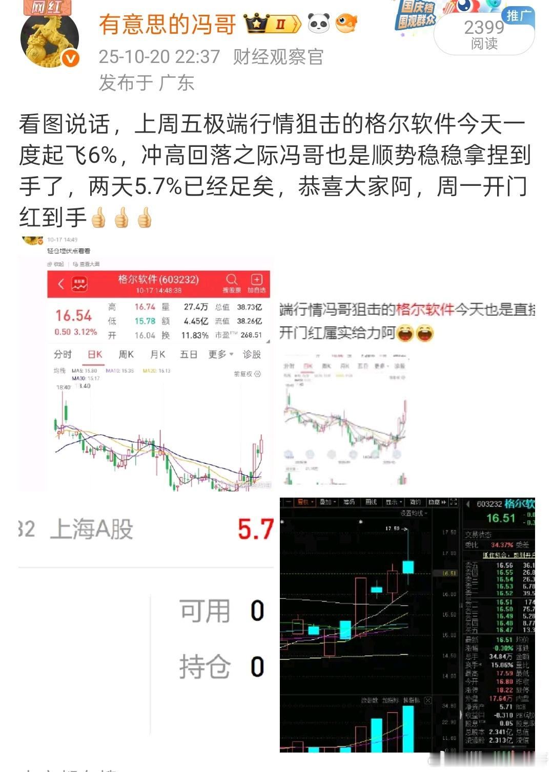 格尔软件也是牛的,今天大盘调整它直接反包涨停哦,应该也是消息面的影响开盘就强势拉了,今天没接回来有点可惜[吃瓜][吃瓜]