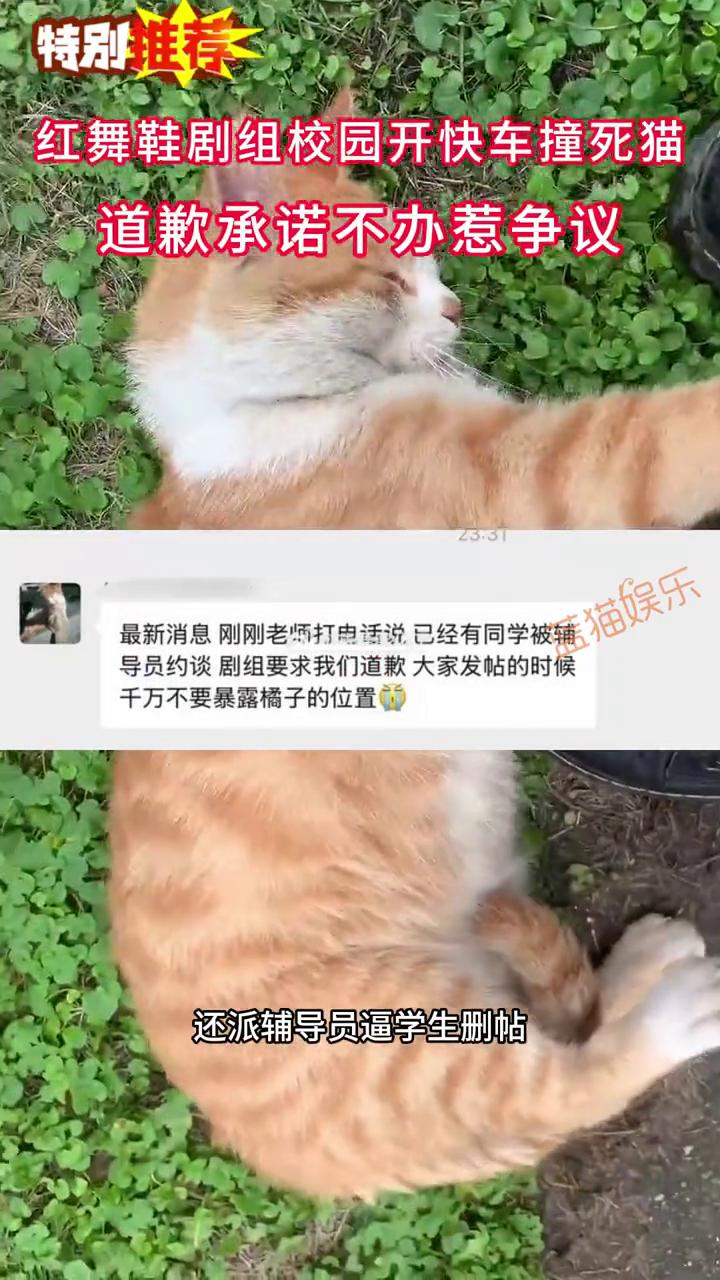 剧组校园开快车撞死猫,道歉承诺不办惹争议。 步行区超速碾死校园团宠,司机甩锅"没看见"?《红舞鞋》剧组这波操作太败好感!10月22日,云大师生喂养多年的"小橘子"在限速10km/h的银杏大道被剧组车碾断脖子,肇事车还直接跑路。凌晨道歉只字不提"超速","移开禁行石墩",反倒称猫是"流浪动物",把锅甩给司机辞职了事。 更讽刺的是,承诺的救助基金连校内猫猫驿站都没对接,纯属画饼?最寒心的是校方:确认肇事车却藏监控,还派辅导员逼学生删帖,前脚压榨群演、踩烈士纪念碑,后脚漠视生命。这剧组的"敬畏"在哪?基金是公关秀吗?监控敢公开吗?