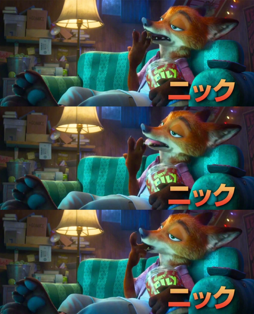 悠闲瘫沙发的狐尼克,这是电影中第一次看到他家中的环境布置,还有呼应上一部的小细节~[哇]