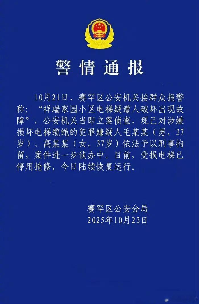 [赞]点赞警方行动迅速!这俩人真的是不知道咋想的,就纯坏是吗?[摊手]电梯是特种设备,人为破坏肯定是要入刑的,而且还是23部电梯[并不简单]这俩货就憋着事情闹大是吗?