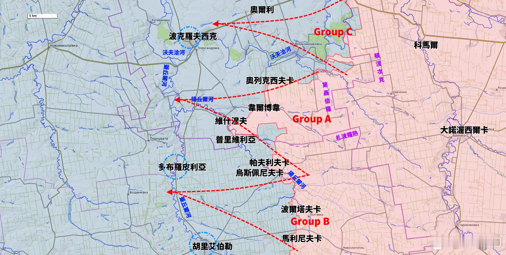 3. 標註波克羅夫西克、多布羅皮利亞、胡里艾伯勒防禦圈