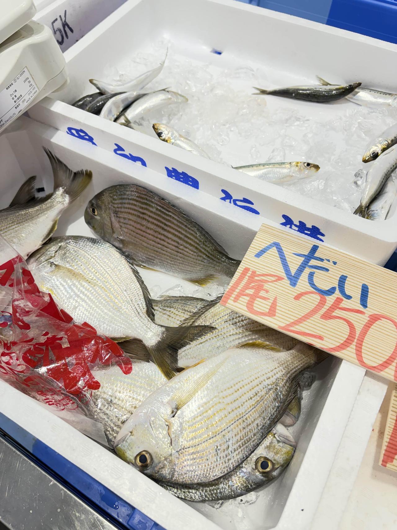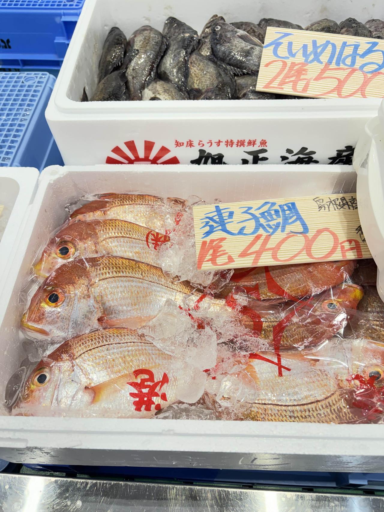 真鯛 特大 2000円 蓮子 鯛中 400円 平鯛 中小 250円 石鰈 特大 1800円