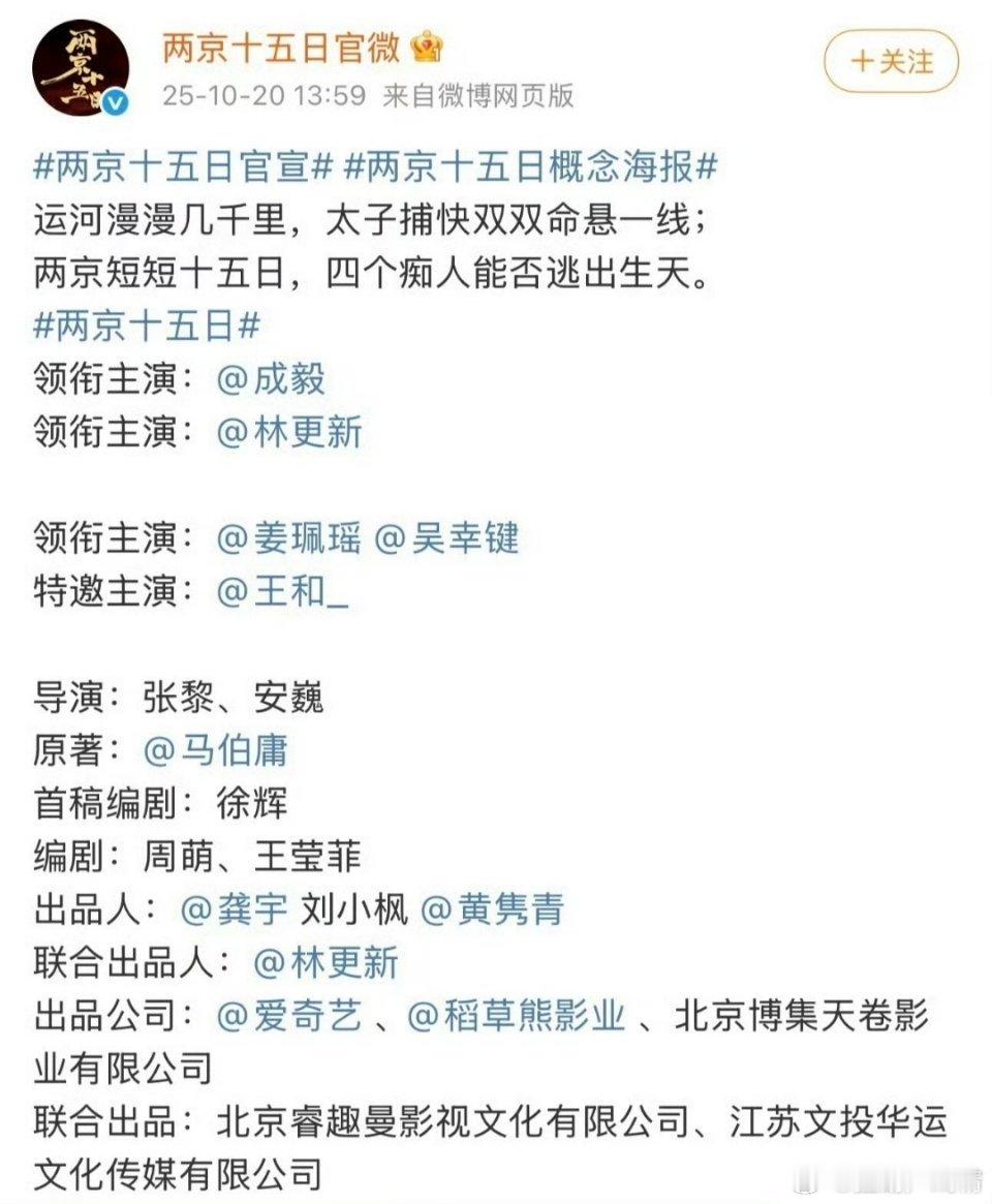万万没想到,成毅咖位居然已经高到可以压番林更新了。《两京十五日》官宣阵容,成毅在