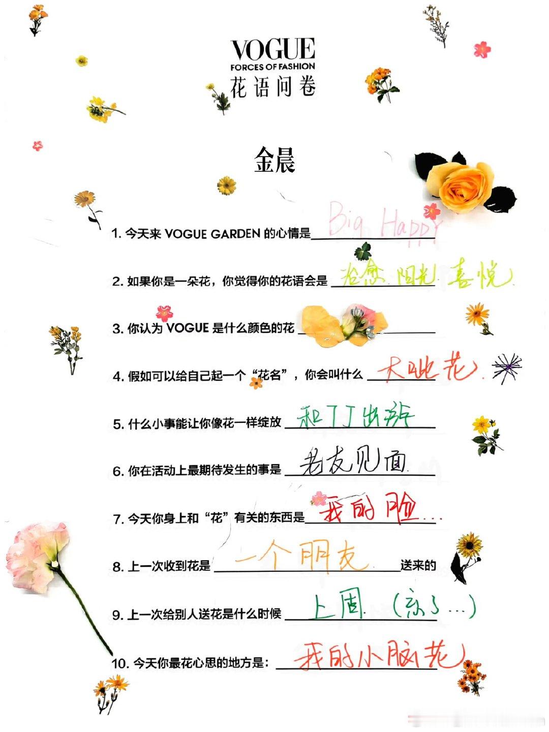 VOGUE花语问卷VOGUE花语问卷公开!刚刚vogue公开了曾舜晞、龚俊、金晨