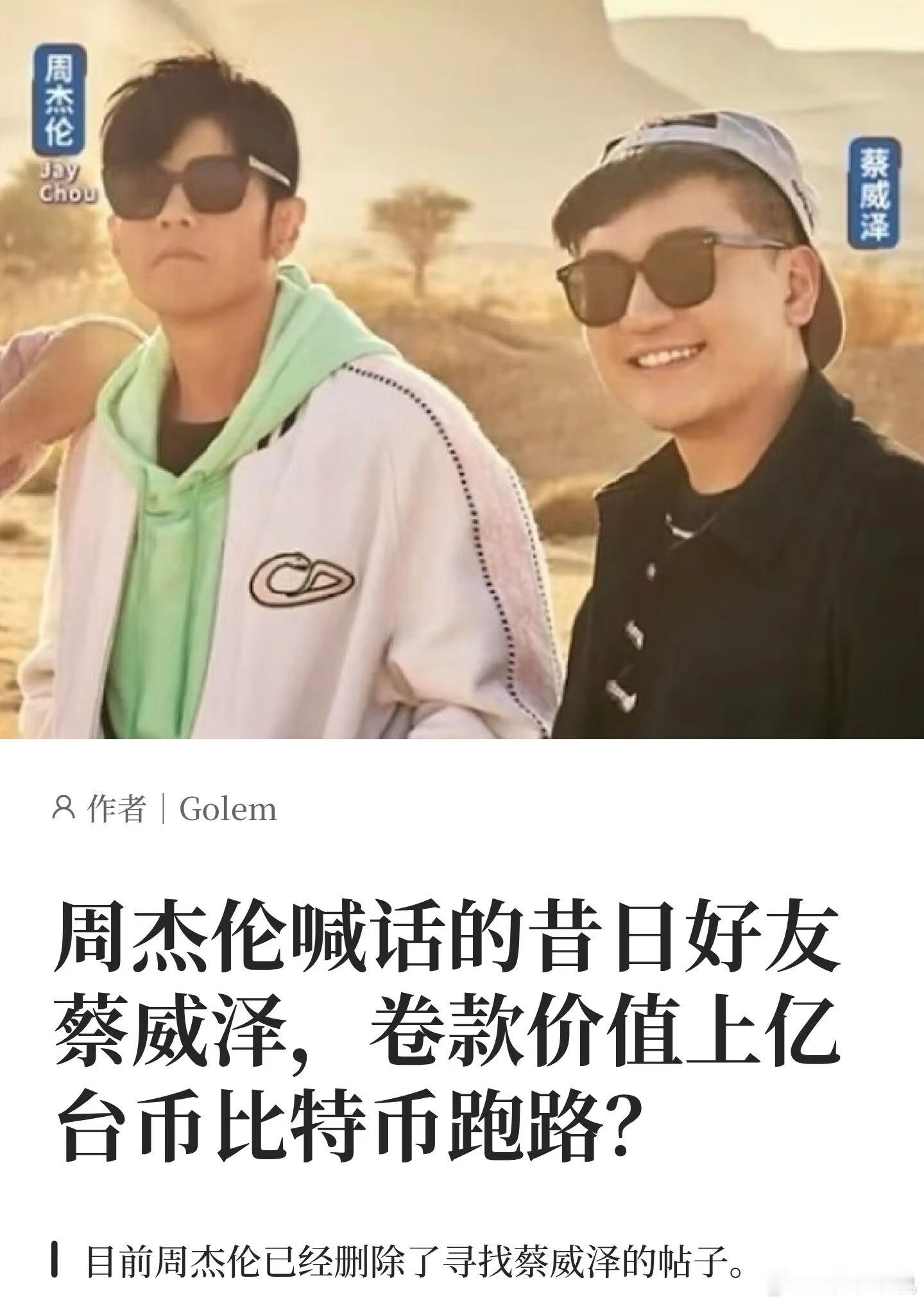 周杰伦蔡威泽疑因超2300万纠纷反目无合同约束、非专业操盘、资产转移境外……投资需谨慎,熟人代投有风险,周董这是也没逃过
