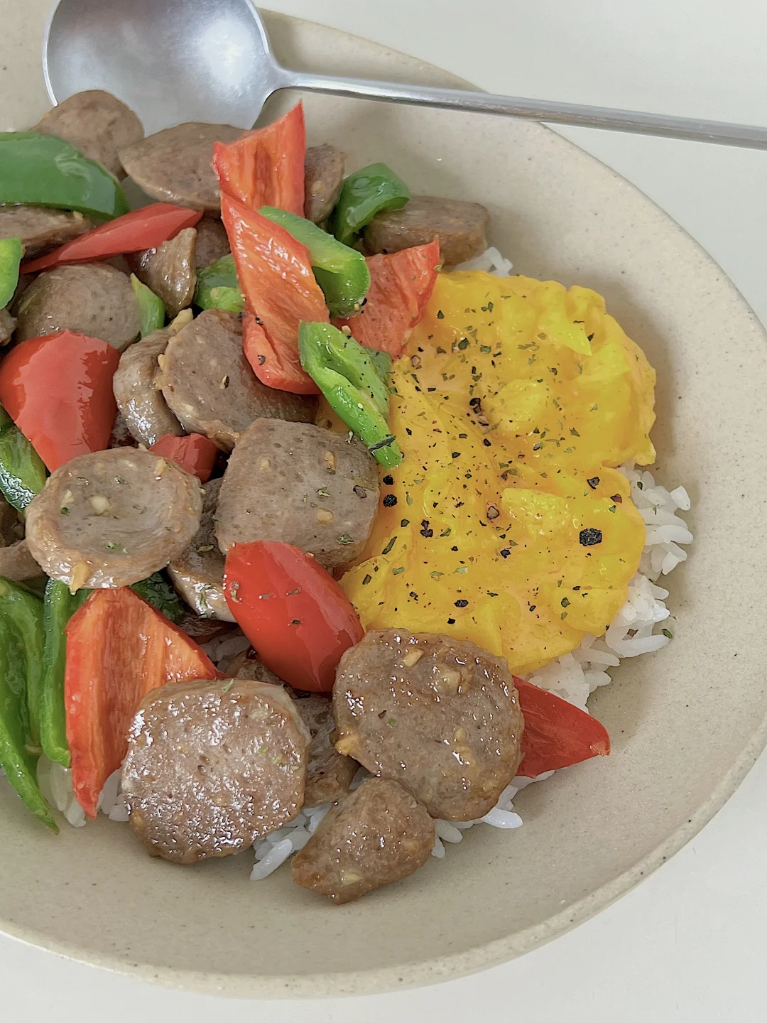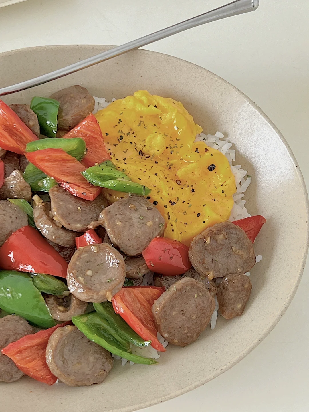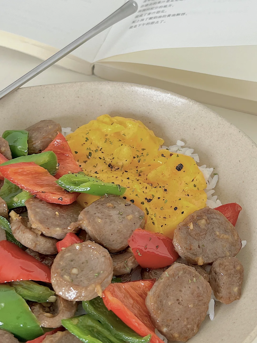 宅家一人食|辣椒炒牛筋丸滑蛋盖饭🍱拿铁☕️