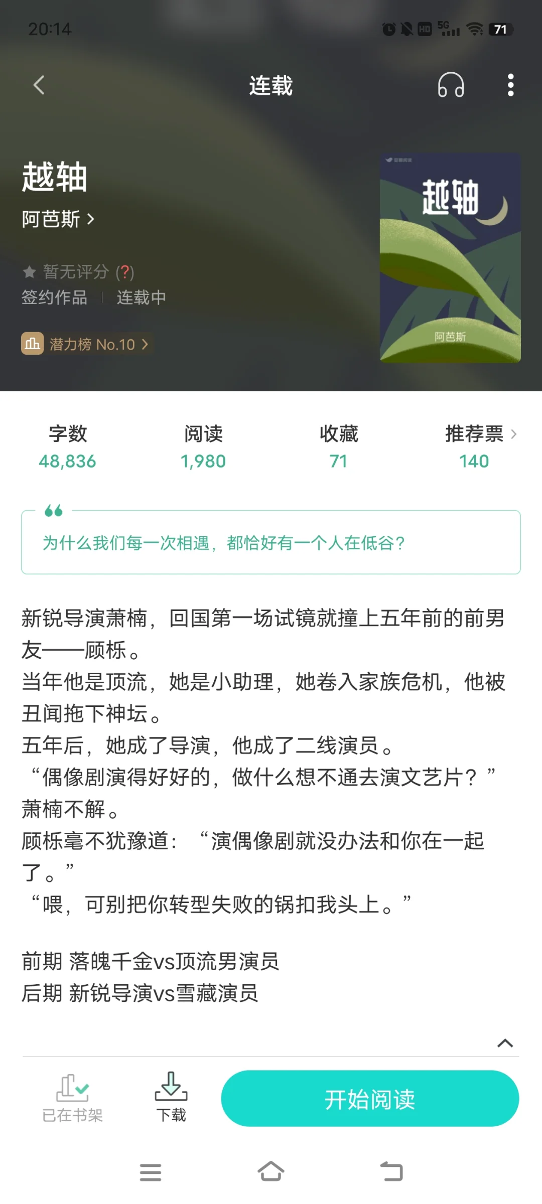 这本每一章的题目都是一部电影名字,作者好浪漫~拍戏的场景写得超级真实,盲猜作者是圈内人哦。期待更新...