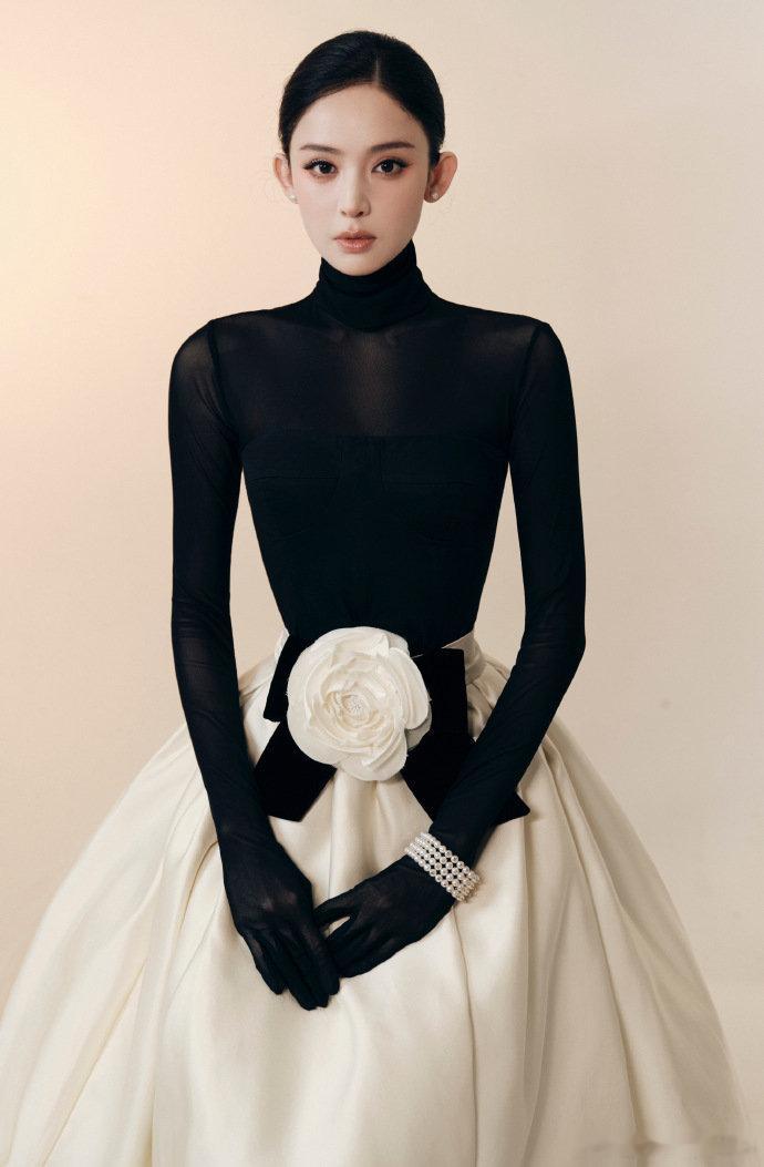 娜扎山茶花造型娜扎这波赫本造型真的美到我心坎里了!高领黑纱配缎面白裙,黑白经典配色太戳人,复古韵味和现代时尚融合得刚刚好