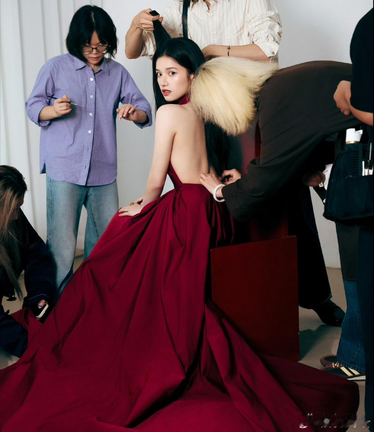 张婧仪一身五彩斑斓的黑张婧仪分享试妆出发图,让我想到不久前迪丽热巴站着试妆场景!