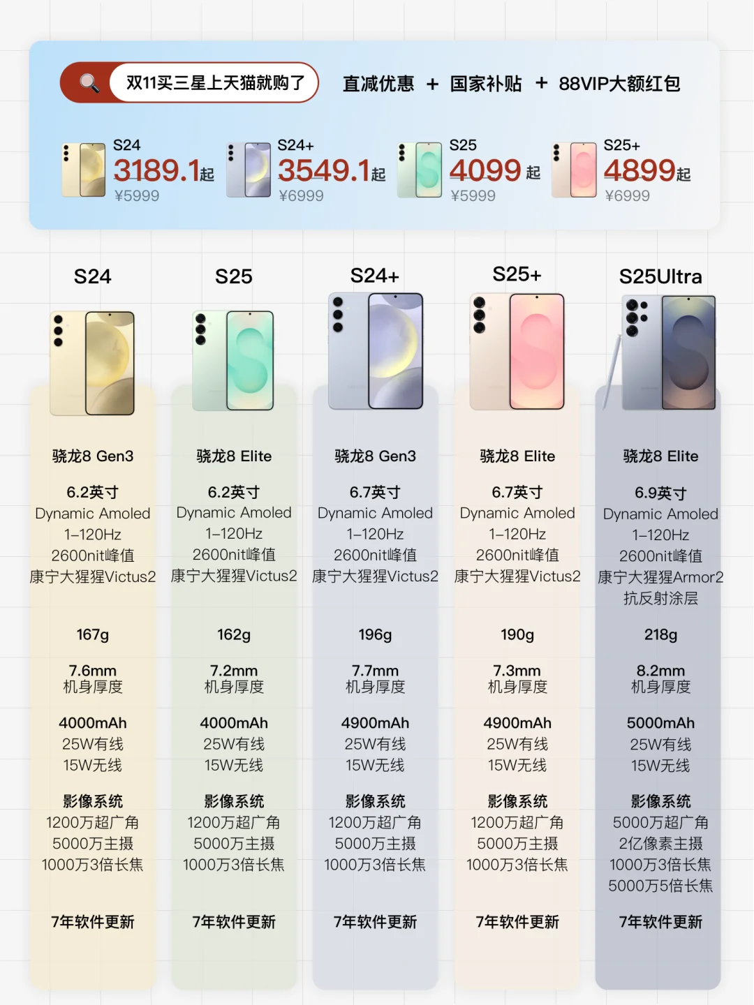 双11期间,S25 💰4099起,S25+ 💰4899 起而且都是12GB内存版本。