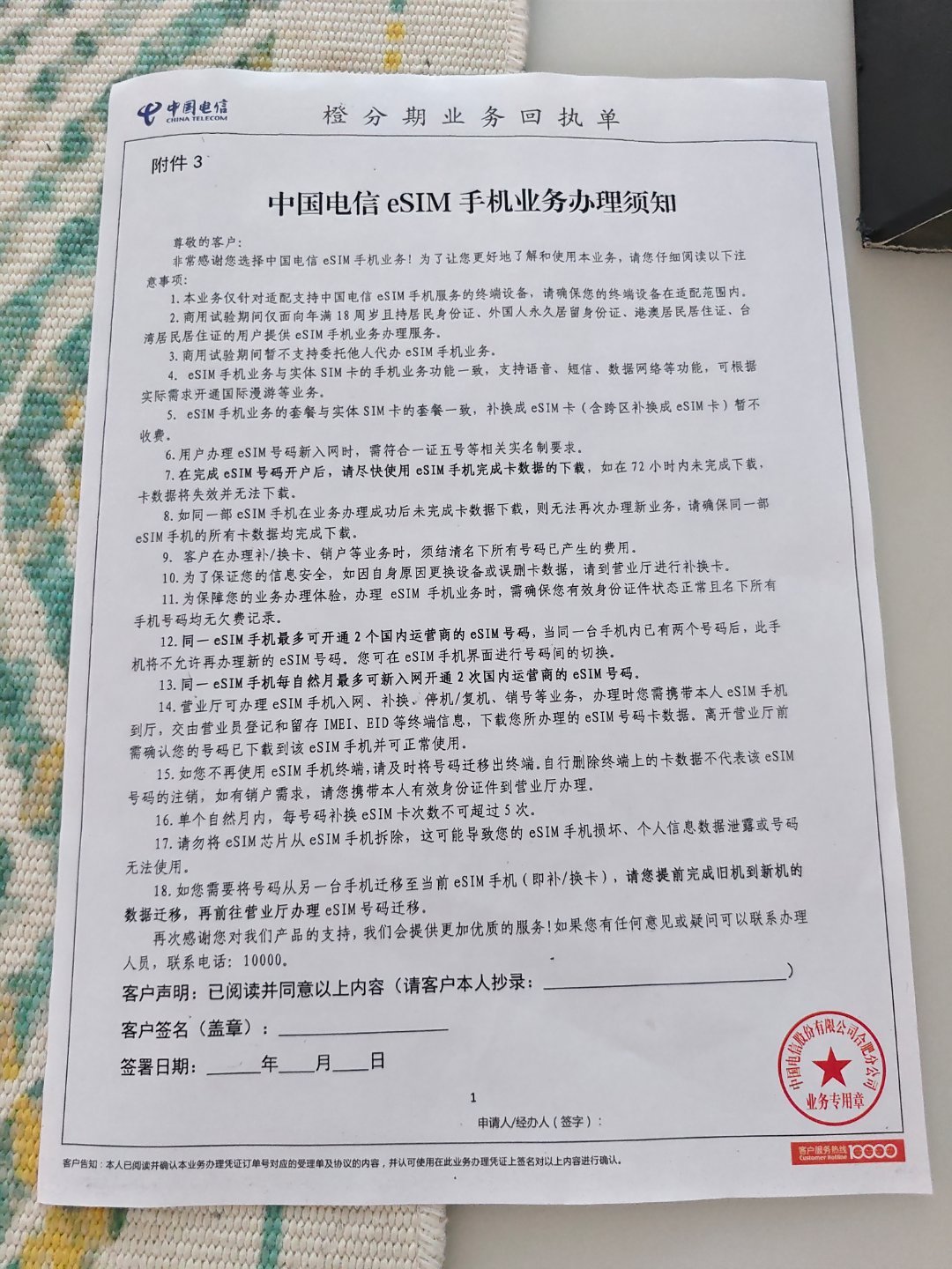 来给iPhone Air开通中国电信 eSIM了,本地携号转网的号卡也可以办理[并不简单]正在办理中,等我进度。