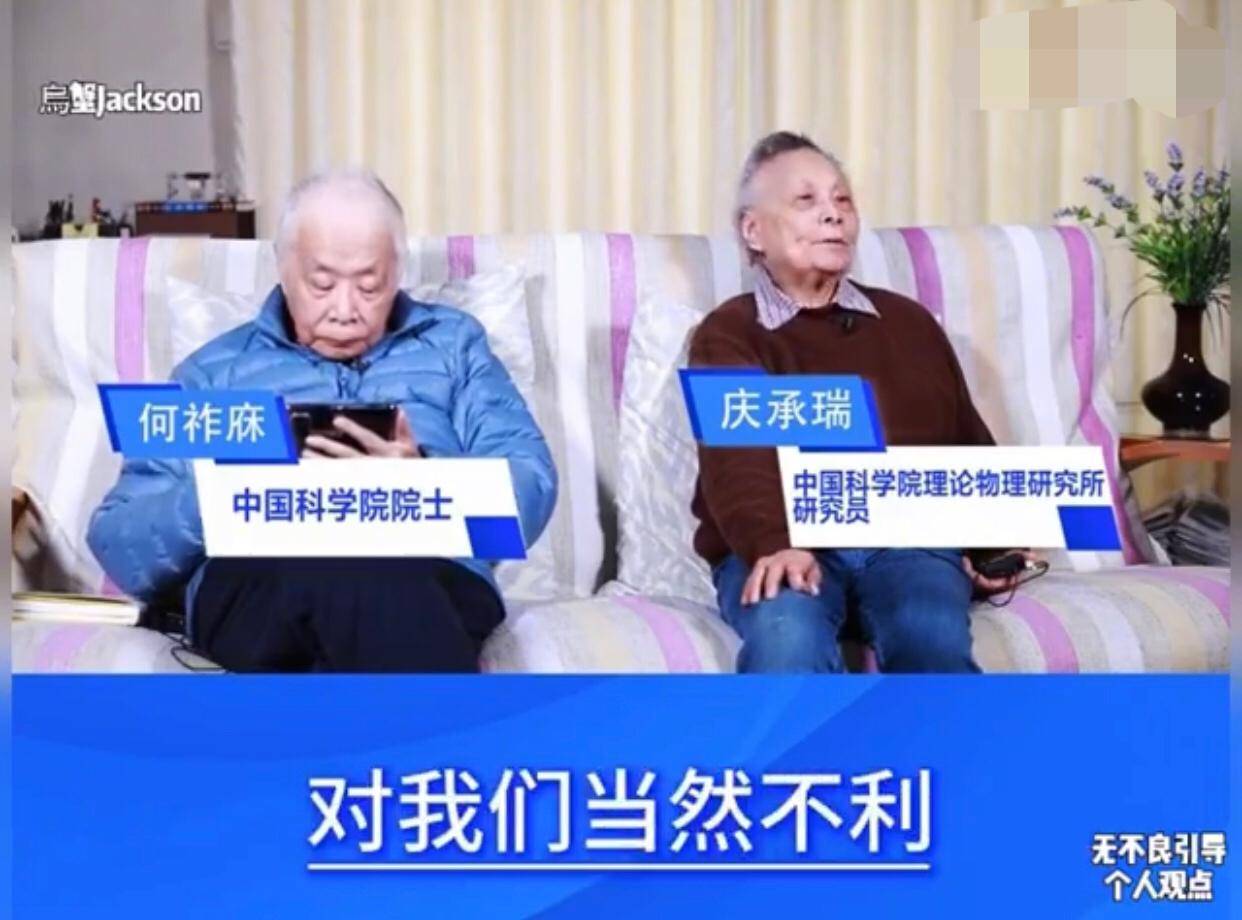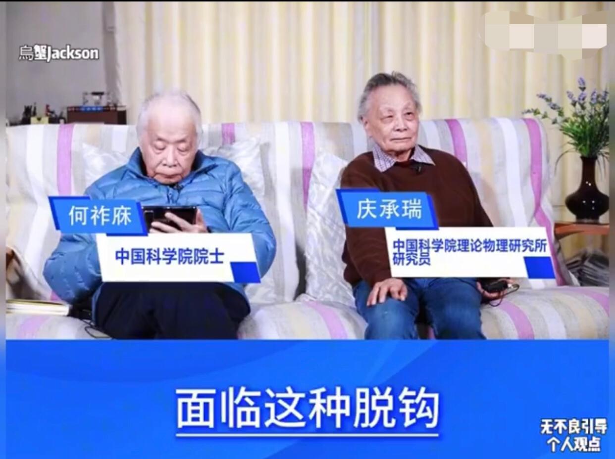 中国科学院院士何祚麻的伴侣庆承瑞物理研究员表示:“现在和美国脱钩对我们很不利,因为到现在为止,我还是要强调一点,我们国家的科学技术,跟人家世界的潮流比,是落后的,不要以为自己很了不起了,我们必须努力的学习人家,向人家学习,把人家好的东西,真正学到手。”