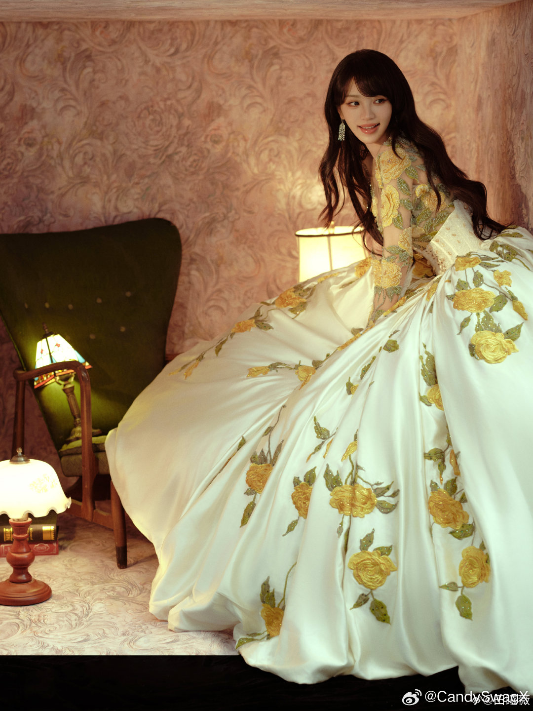 一袭 Amelia Casablanca 玫瑰礼服搭配Piaget珠宝出镜今日VOGUE活动造型大片,美丽的油画女郎戴花而来🌺💛VOGUE盛典