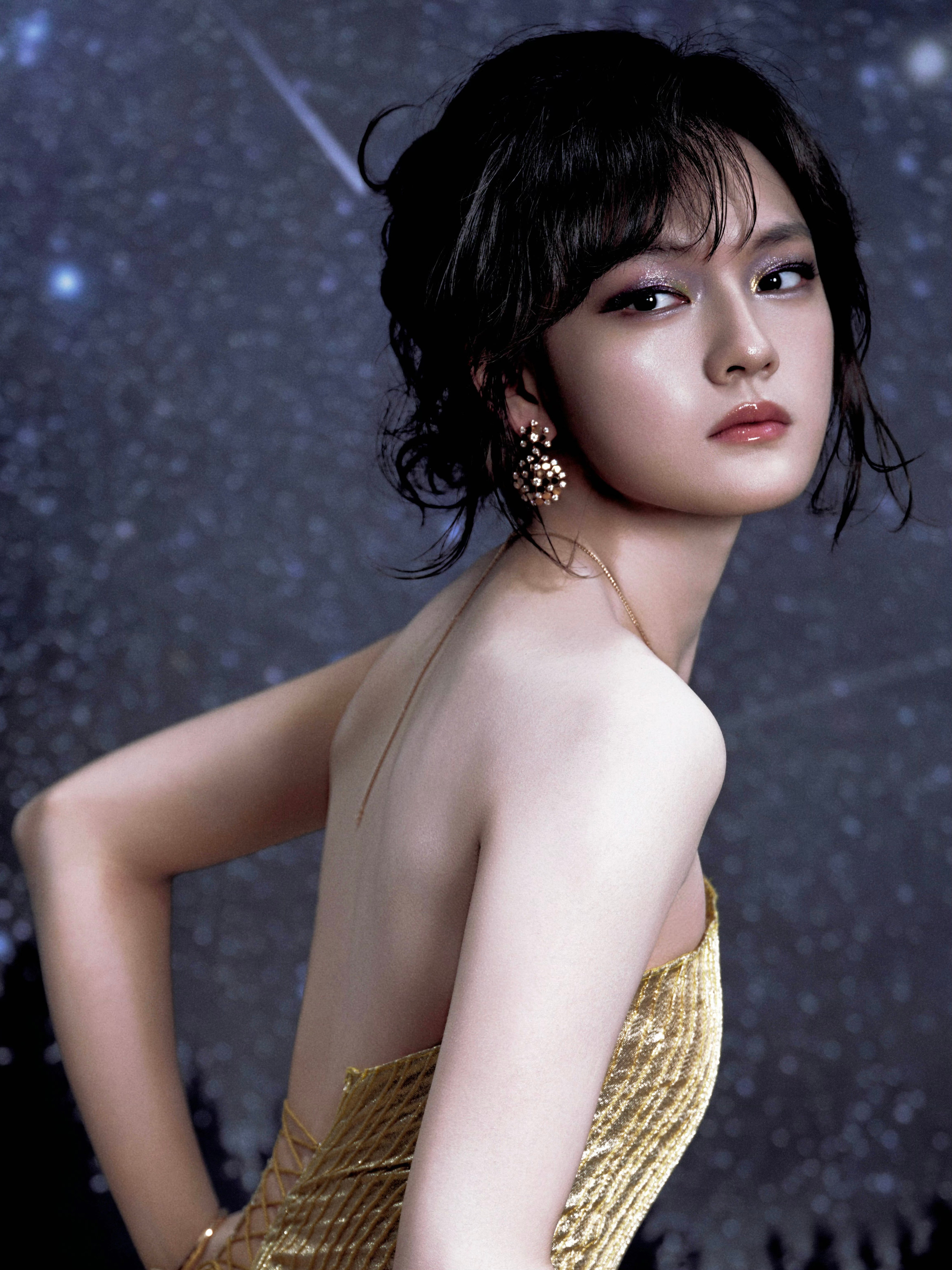 身穿 ZHAOYI YU 定制裙装,搭配 CHAUMET Bee de Chaumet珠宝套系出镜造型大片,优雅复古的鎏金美人⚜️💛