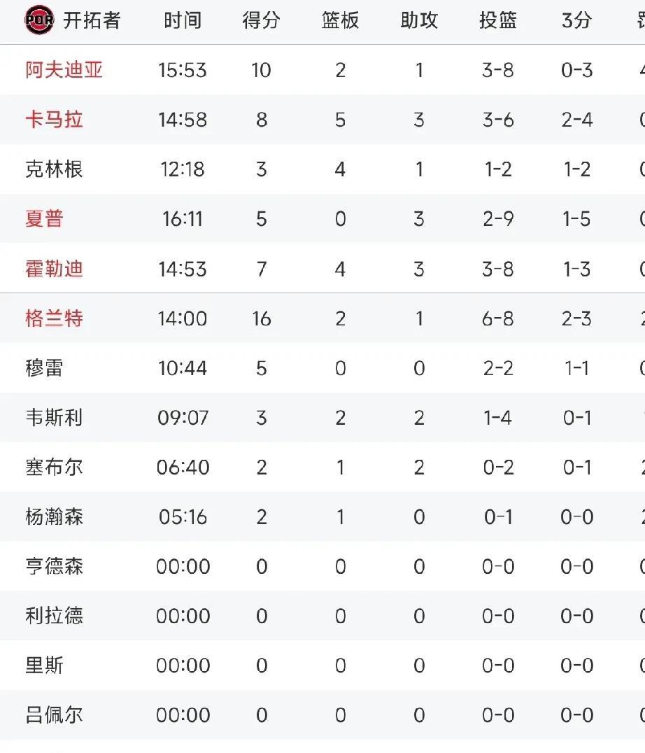杨瀚森首秀半场数据出炉2分1篮板,还是有点紧! 杨瀚森的NBA常规赛首秀,目前上半场已经结束出场5分钟,拿到2分1篮板,2分是靠罚球拿到的。能看出还是紧张,毕竟面对戈贝尔不是那么简单的。 这场还是给主教练比卢普斯点个赞,第一场常规赛就给了杨瀚森的出场机会,这不是一般主教练能够做到的,也能看出开拓者绝对是有意要培养杨瀚森的。 希望下半场加油吧!!!